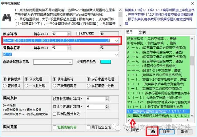 您也可以将上述表达式直接复制到Word查找替换对话框,点击上图中右下角的“望远镜”一键完成复制