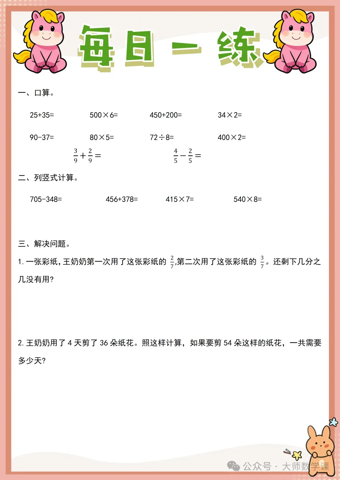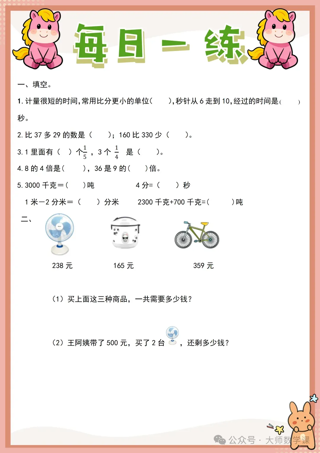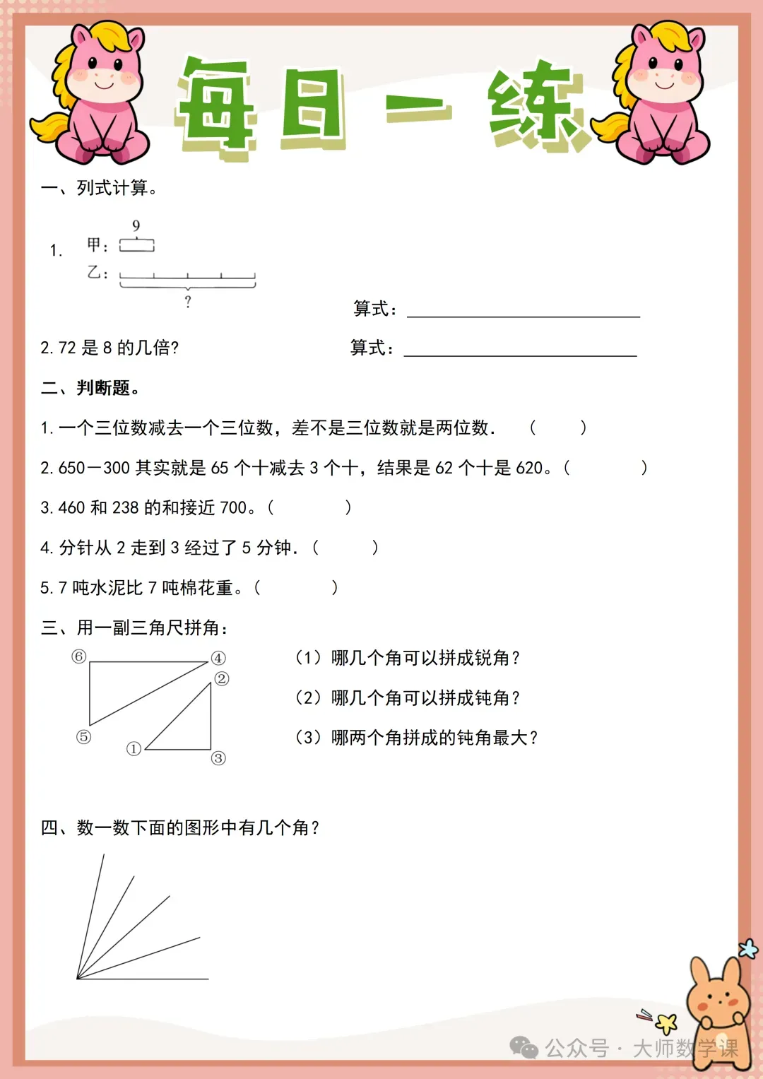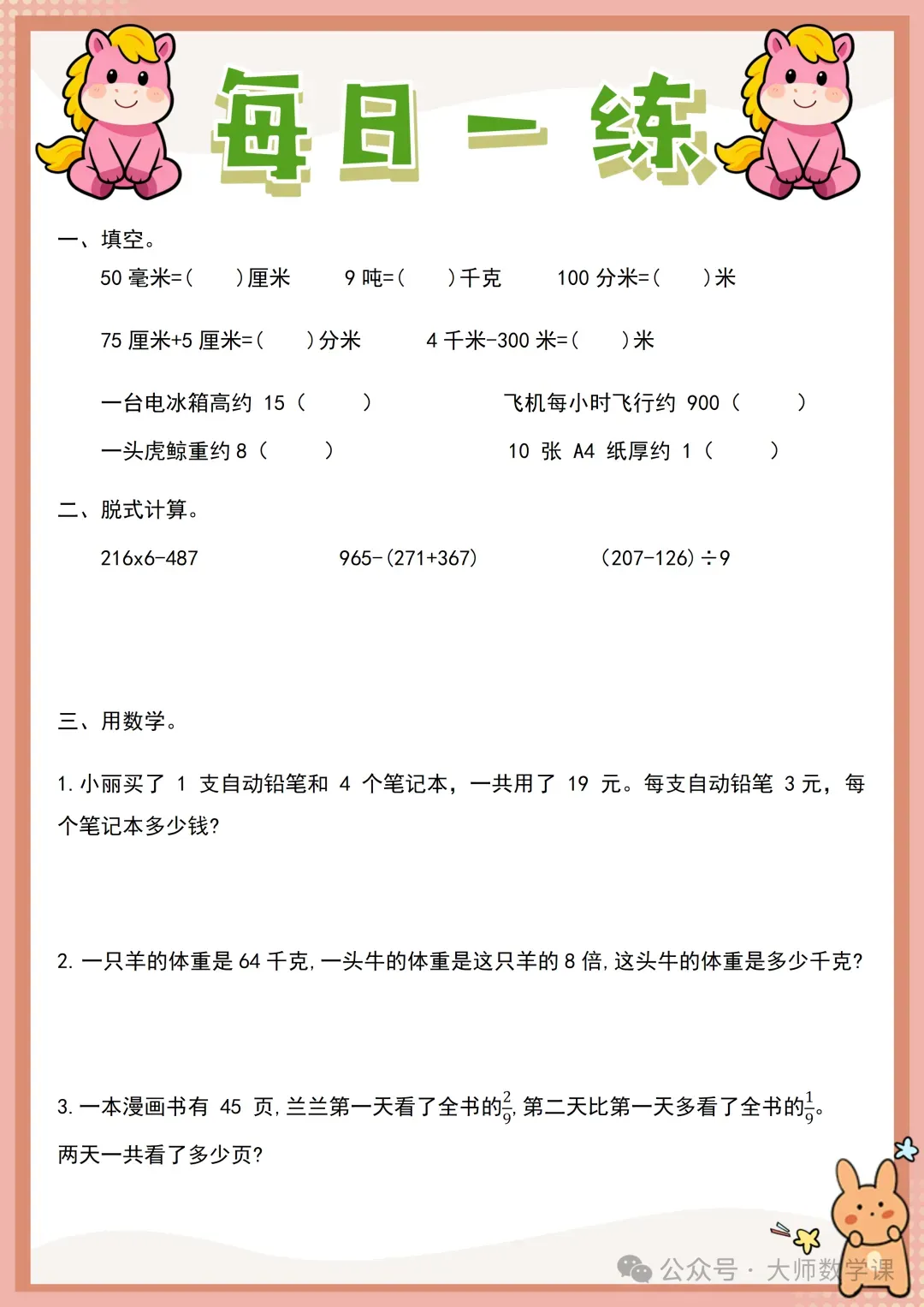 2026三年级数学寒假作业( word可下载) 完整内容请在文末自行下载 电子版网盘下载 下载方法 「三年级数学寒假作业.docx」 链接:https://pan.quark.cn/s/62cd8202927d 来源:大师数学课