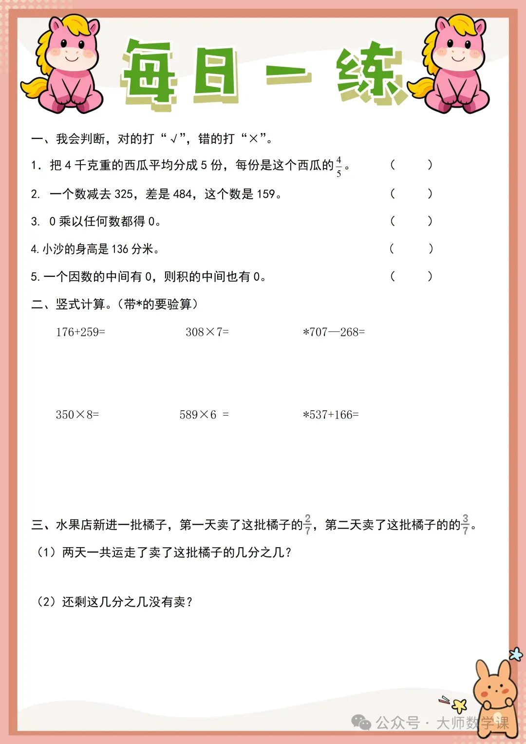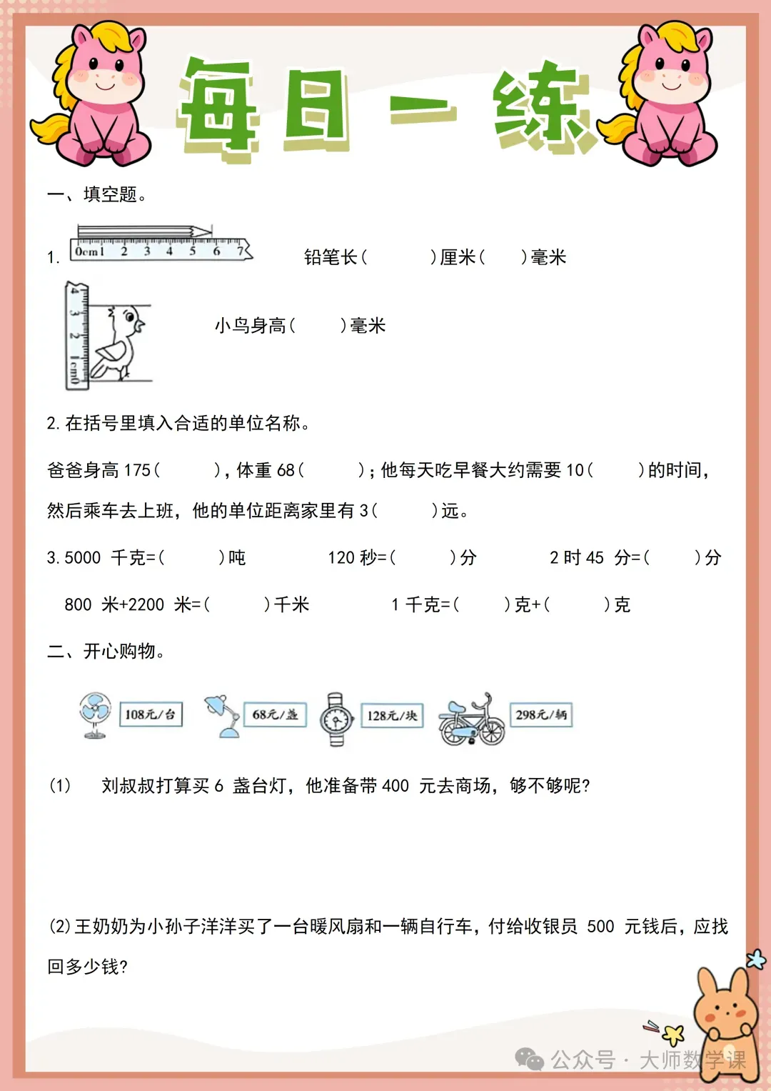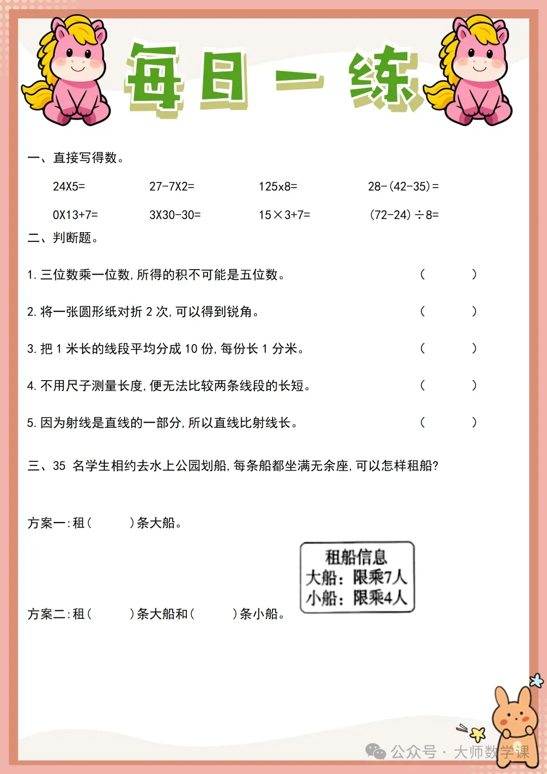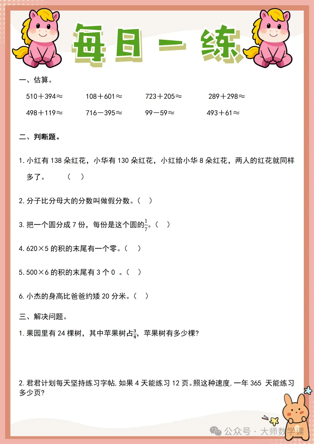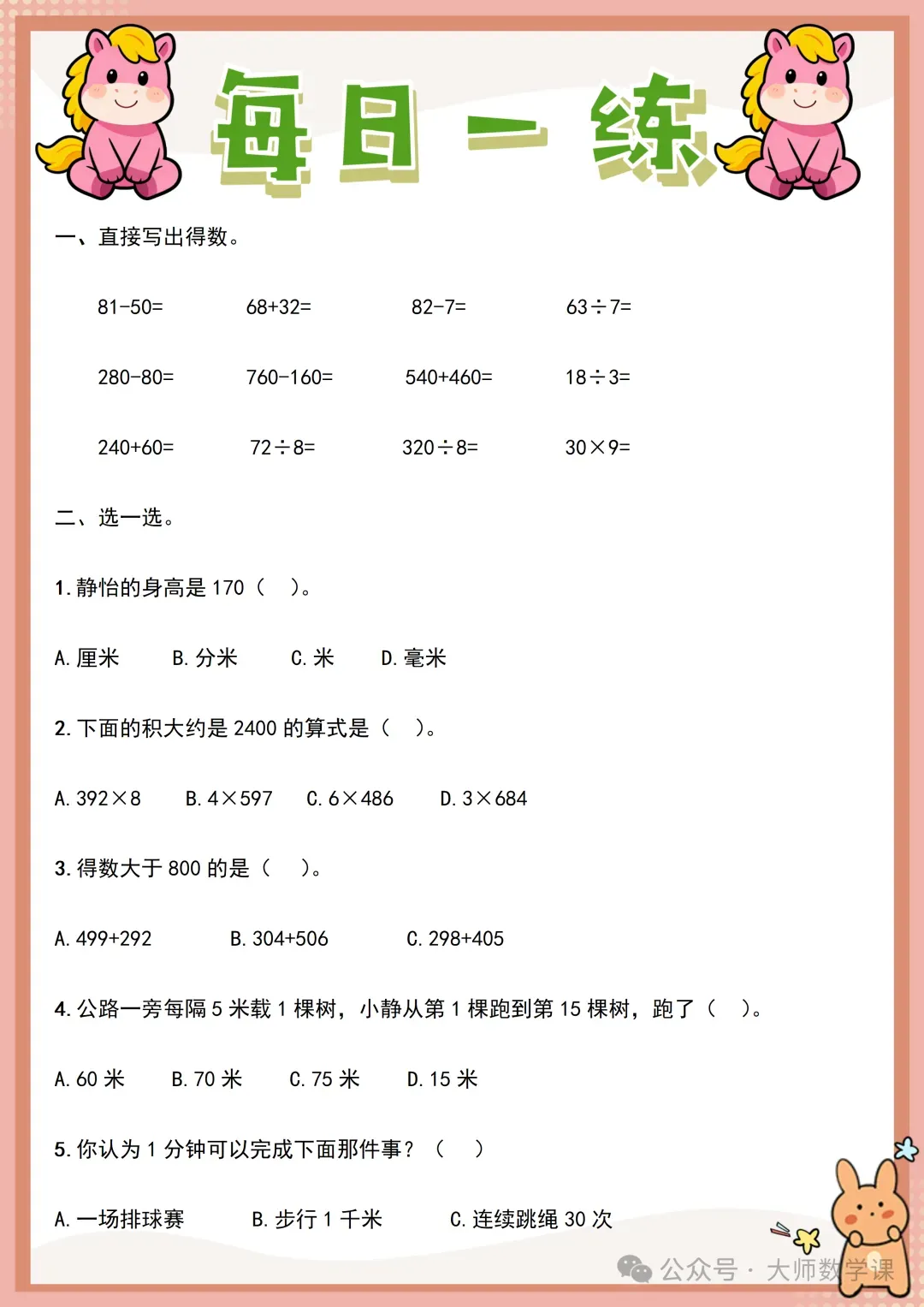2026三年级数学寒假作业( word可下载) 完整内容请在文末自行下载 电子版网盘下载 下载方法 「三年级数学寒假作业.docx」 链接:https://pan.quark.cn/s/62cd8202927d 来源:大师数学课
