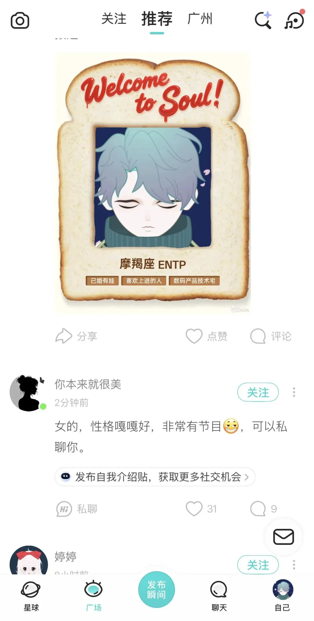 除了一对一社交,平台搭建了兴趣广场与社群体系,满足用户的群体归属需求。广场按主题划分不同板块,情感、职场、学习、游戏、音乐、二次元等类目清晰,用户可浏览、评论、互动,也可带标签发布内容,获得精准曝光。