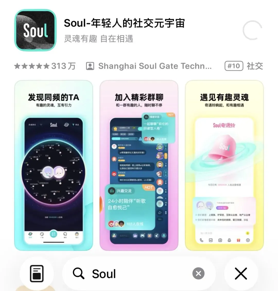 在各大APP应用市场搜索Soul,点击下载即可。