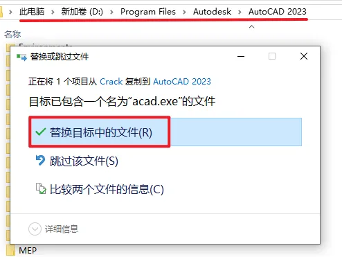 7.返回安装文件夹,双击打开“Crack”文件夹,复制“acad”文件