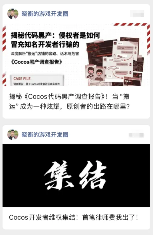 为了净化源码行业,维护所有Cocos游戏开发者的权益,公众号大v晓衡的游戏开发圈成立了Cocos开发者版权保护联盟,集结众多Cocos游戏开发者。