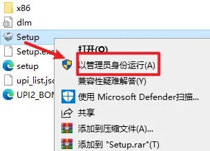 2.打开刚刚解压的文件夹,双击打开“Setup”文件夹,选中“Setup”右键选择“以管理员身份运行”