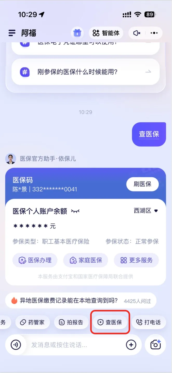 阿福打通了国家医保局,可一键调取医保码、查询医保余额,还可直接开启就医服务,贴合长辈日常预约挂号的就医需求。