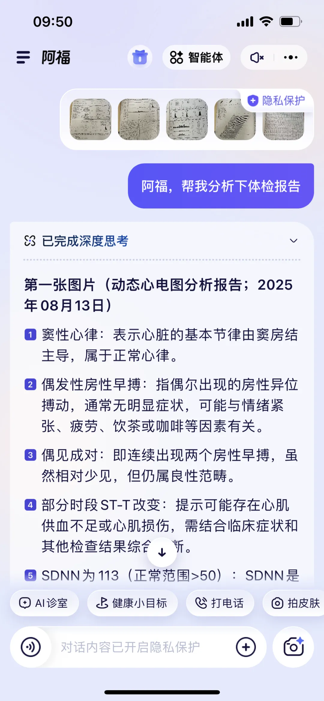 比如,让它帮忙解读一份“动态心电图分析报告”,它会快速总结分析结果“患者整体心电活动基本稳定,存在偶发性房性早搏……”,并给出合理的健康建议。