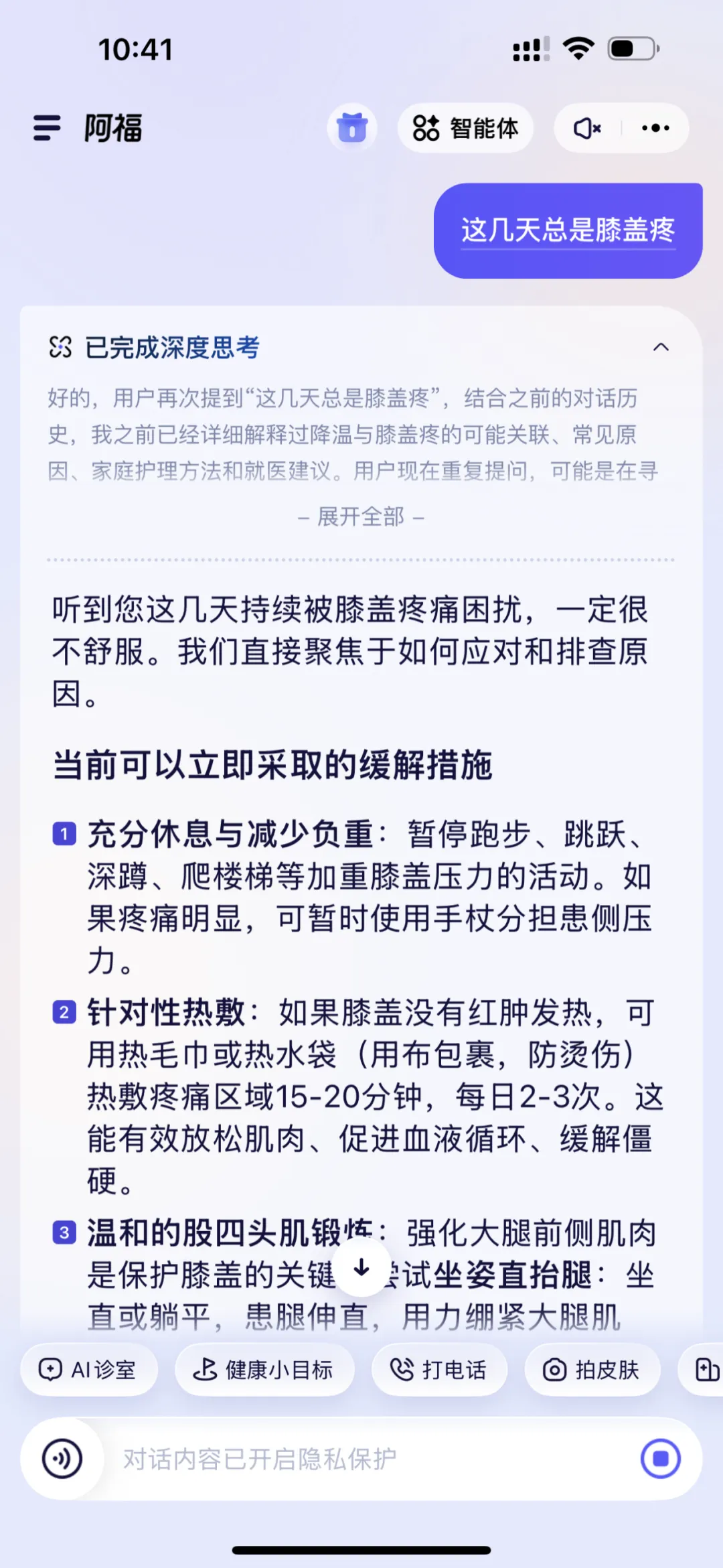 父母网上冲浪,子女们担心的问题之一,就是“养生信息真假难辨”。不同于普通AI工具的泛泛而谈,阿福是全国200家医院,500多位名医一起训练出来的,其中还包含了6位院士,给出的建议基于权威医学指南,并且无广告干扰,规避了长辈被虚假健康信息误导的风险。