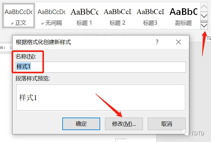 操作:点击【样式】组的下拉箭头【创建样式】,输入名称,点击【修改】,其他操作就和刚才讲的一样啦~