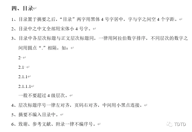 一级标题黑体4号字,左顶格,二级标题黑体小4号字,左顶格,三级标题楷体小4号字,左顶格。