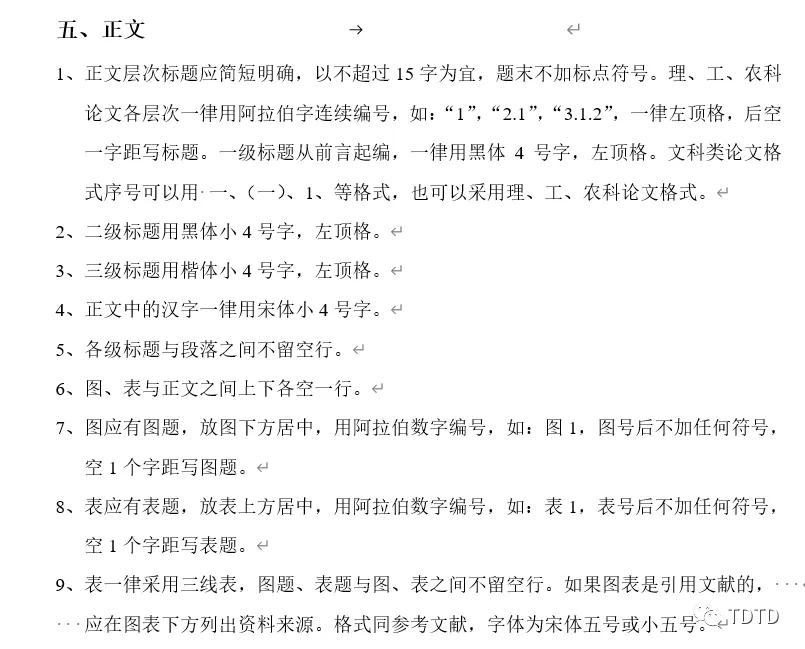 标题部分要求:采用阿拉伯数字连续编号,如“1”,“2.1”,“3.1.2”,一律左顶格,后空一字距写标题。