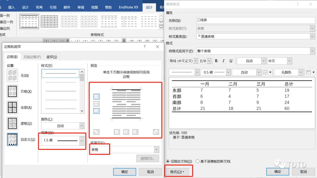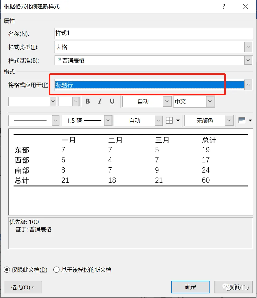 勾选【基于该模板的新文档】,这样三线表的样式就可以在以后新建的文档中应用。