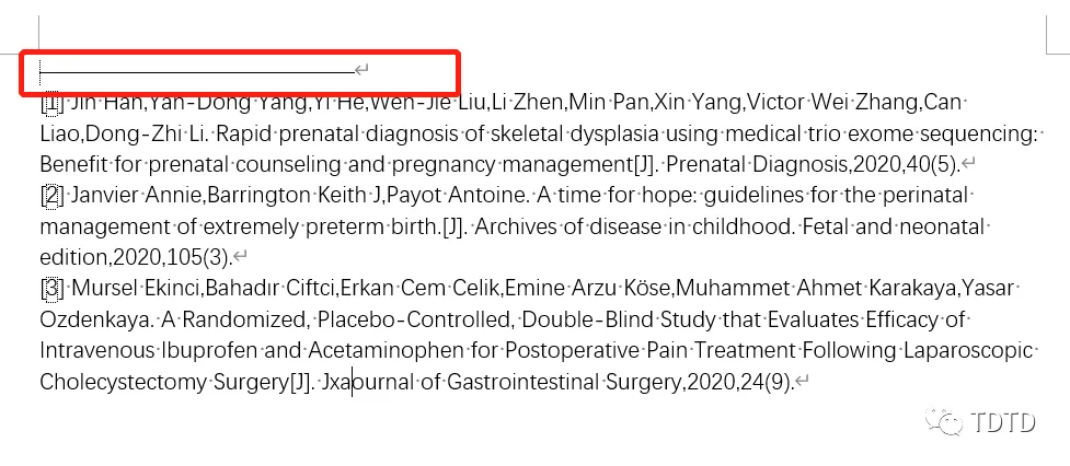 这个时候基本就完成了参考文献的插入,但是参考文献的上方有一行横线,我们需要删除。