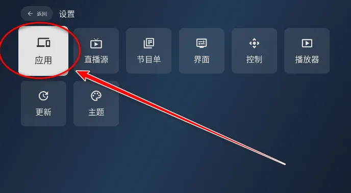 在设置页面里,点击“应用”选项。