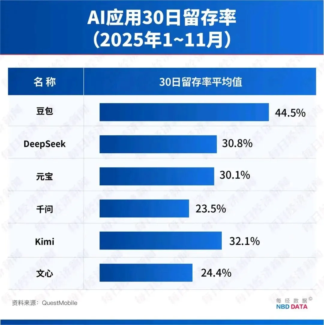 AI大模型App排名TOP3:豆包、DeepSeek、元宝