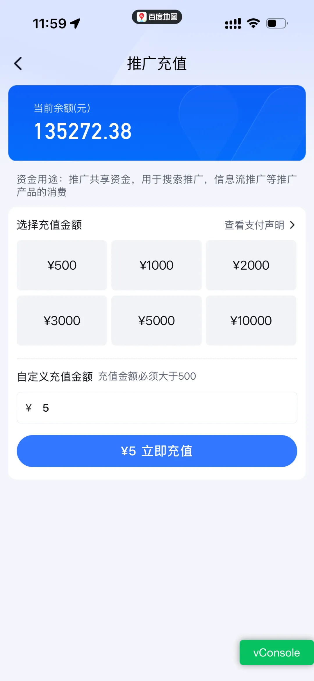 1️⃣目前部分功能(如修改推广计划、充值后开具发票、退款等)暂未在移动端开放,建议结合PC端使用。2️⃣充值权限以账号类型为准,部分渠道代理账号需通过代理商进行操作。