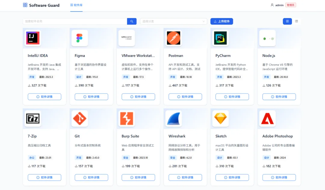 Software Guard 是一个功能完善的企业内部软件分发管理系统,通过建立统一的软件分发中心,确保员工从安全的内部渠道获取软件,有效降低安全风险。