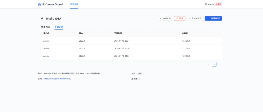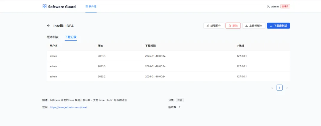 开源免费企业内部软件分发管理平台 | 软件版本管理、漏洞追踪、下载统计和权限控制