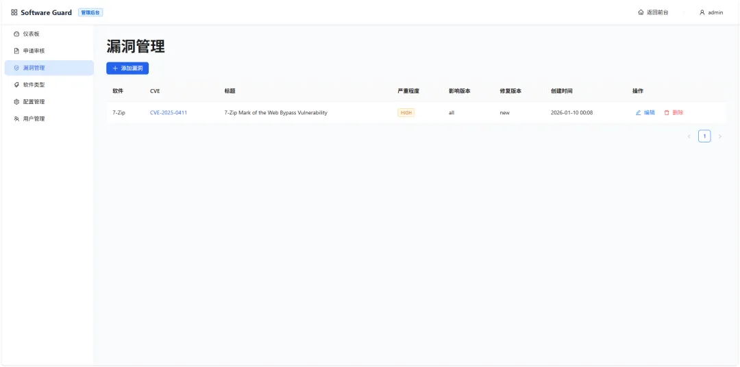 管理后台 – 漏洞管理