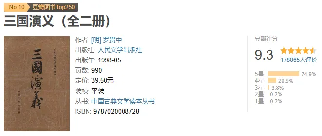 推荐理由:以汉末三国纷争为背景,塑造了刘备、曹操、诸葛亮等经典人物,串联起赤壁之战、空城计等脍炙人口的典故。在权谋与战争的叙事中,既展现乱世英雄的豪情与谋略,也暗含对兴衰成败的哲思,是中国古典演义小说的巅峰。