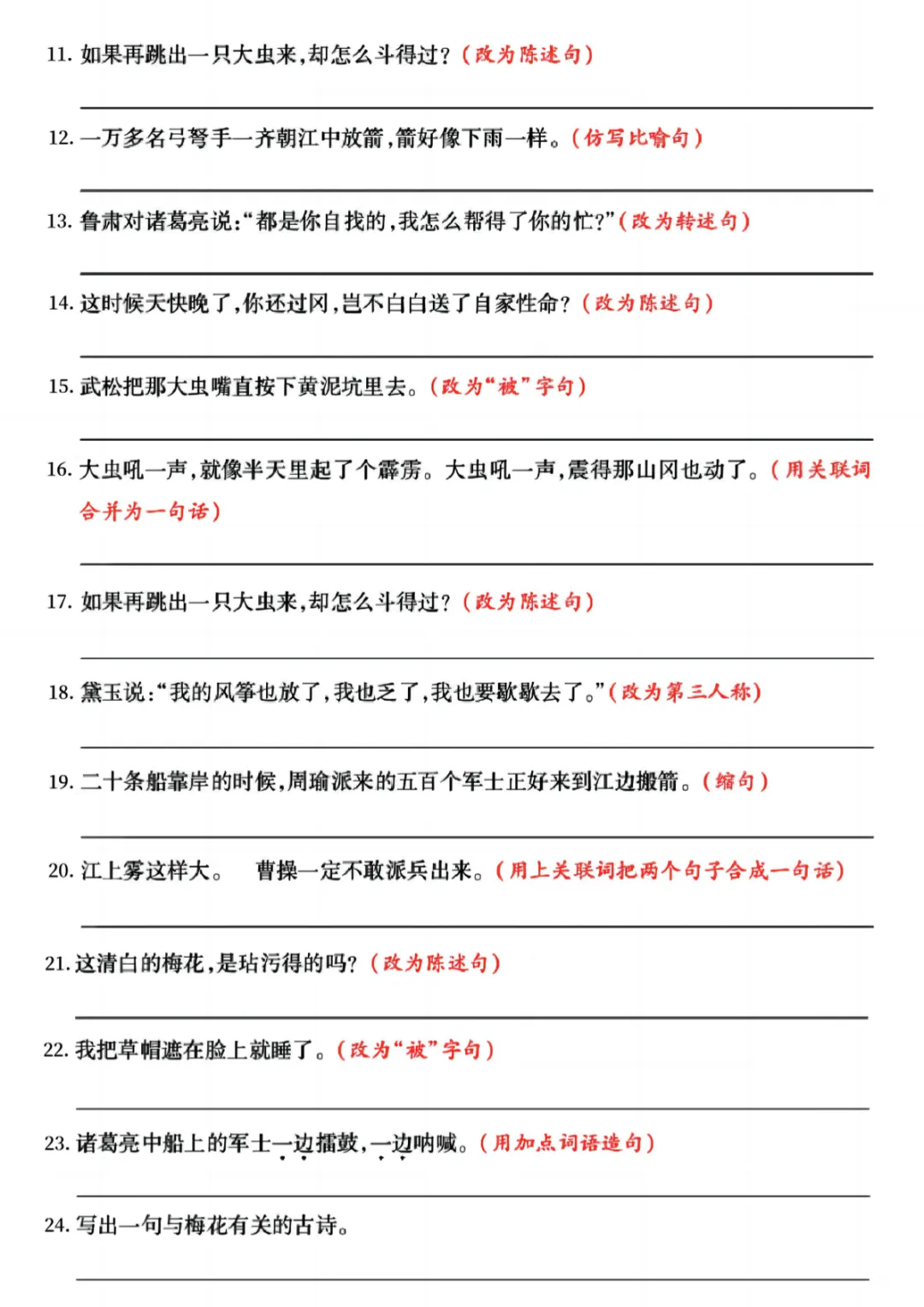 【免费下载】五年级(下)语文句式拔高训练76道期中复习,PDF电子版,可打印