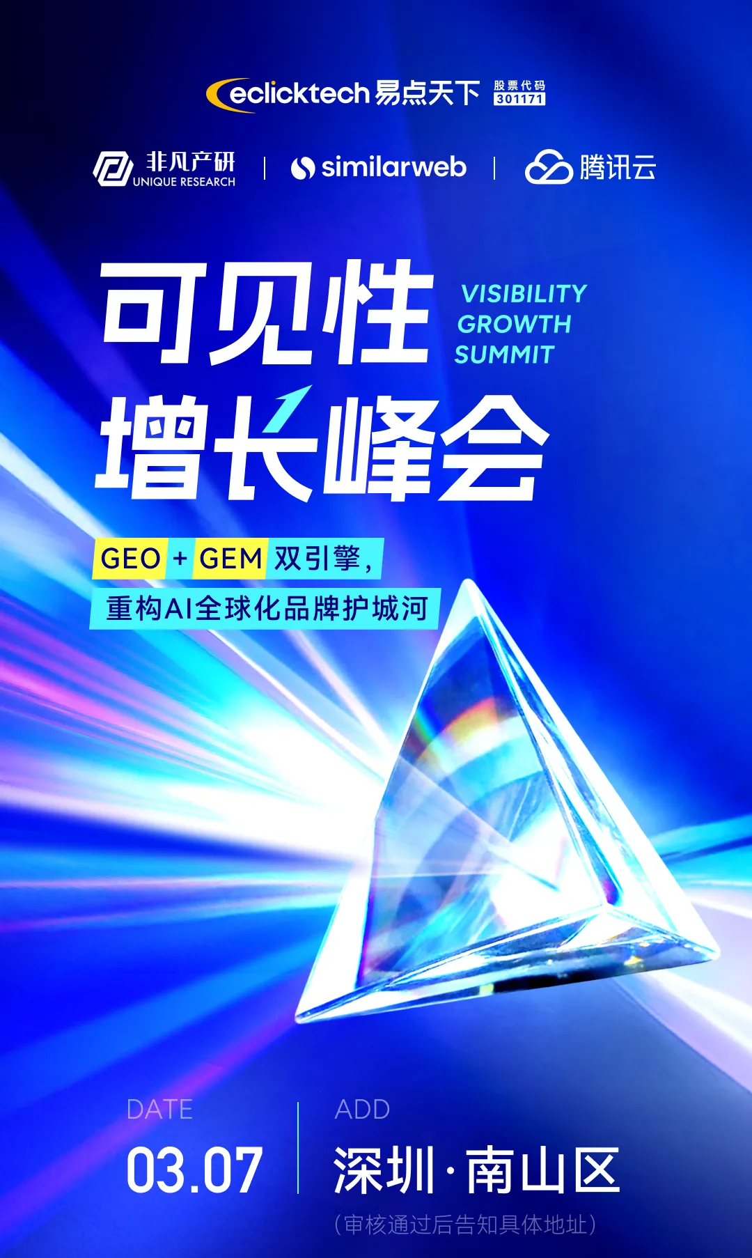 3月7日,由易点天下主办,非凡产研、Similarweb、腾讯云联合主办的可见性增长峰会将在深圳举办,携手AppLovin、Shopify、Moloco、impact.com、智谱AI、Kuse、EZsite AI、Cross Border Digital、扬帆出海、Quick Creator、英文SEO实战派等卓越团队,一场关于「GEO+GEM双引擎,重构AI全球化品牌护城河」的实战推演,即将拉开帷幕。