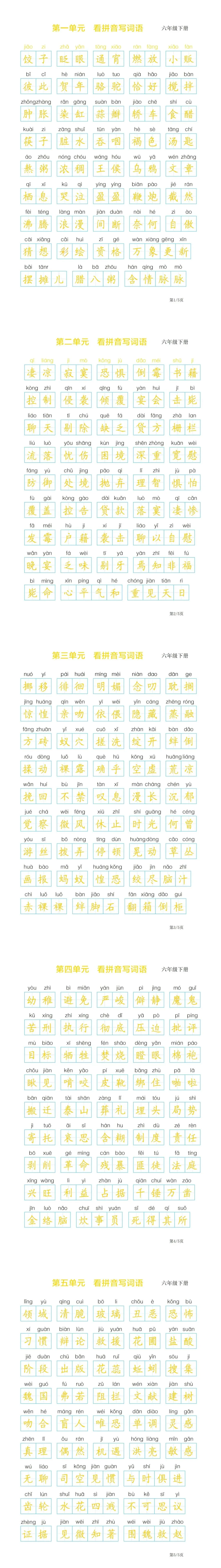 六年级下册看拼音写词语字帖(免费下载) 温馨提示:点击文末阅读原文下载全部 声明:素材来源网络,本文意在交流学习,普及知识,如涉及版权等问题,请及时与我们联系。 领取方式 点击下方信息后 发送消息“寒假”即可领取 领取电子版请戳这里~