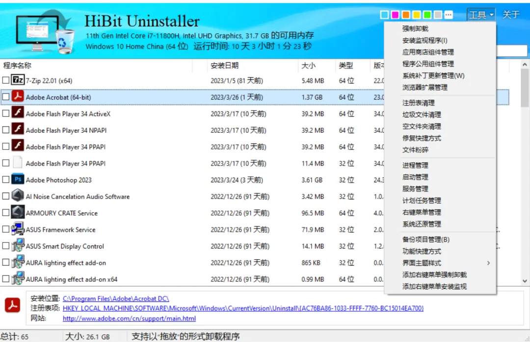 【最新版】流氓软件强卸工具(强制/批量卸载)HiBit Uninstaller v4.0.10 单文件版+绿色便携版