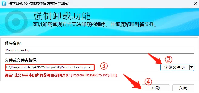 点击右上角“强制卸载”,找到软件的安装目录,再点击启动
