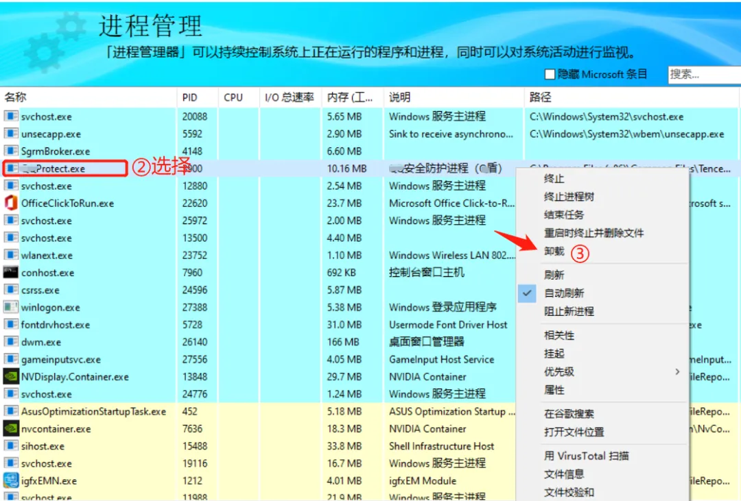5、对正在运行的软件(流氓软件居多),进行强制卸载