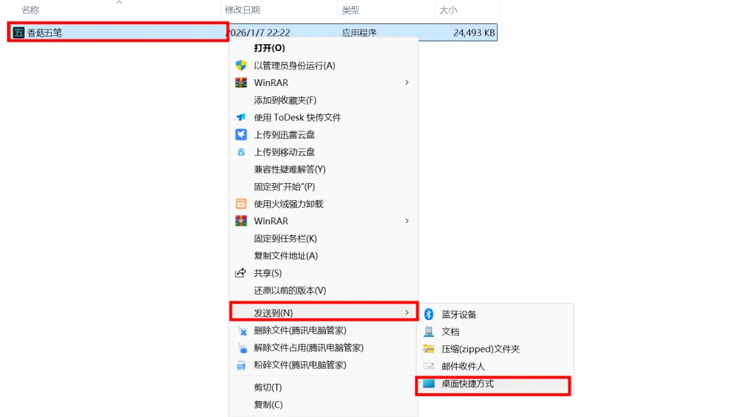 2、选中程序——发送到——桌面快捷方式