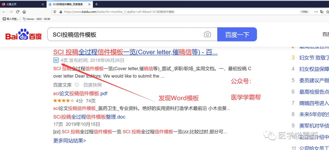我们经常需要上网查资料,比如我要写SCI论文了,需要去找一份SCI投稿Word格式模板。第一步肯定是百度搜索: