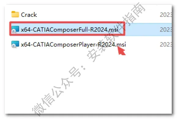 7.返回解压的“CATIA.Composer.2024”文件夹,双击运行“x64-CATIAComposerFull-R2023-T3.msi”安装文件温馨提示:x64-CATIAComposerPlayer-R2023-T3.msi安装教程一样,只能安装其中一种软件