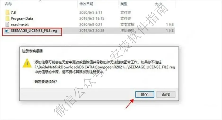 3.再运行“ SEEMAGE_LICENSE_FILE.reg”并确认将信息添加到Windows注册表中;