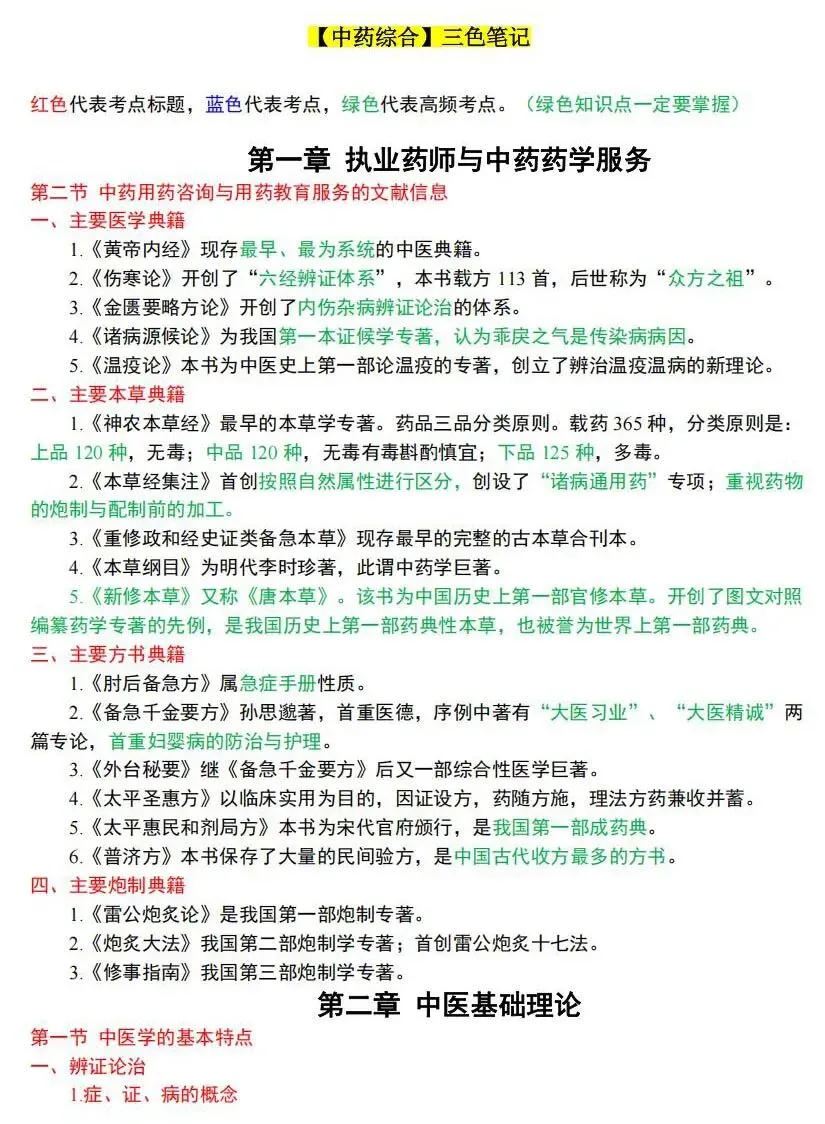 2026年执业药师三色笔记pdf免费领