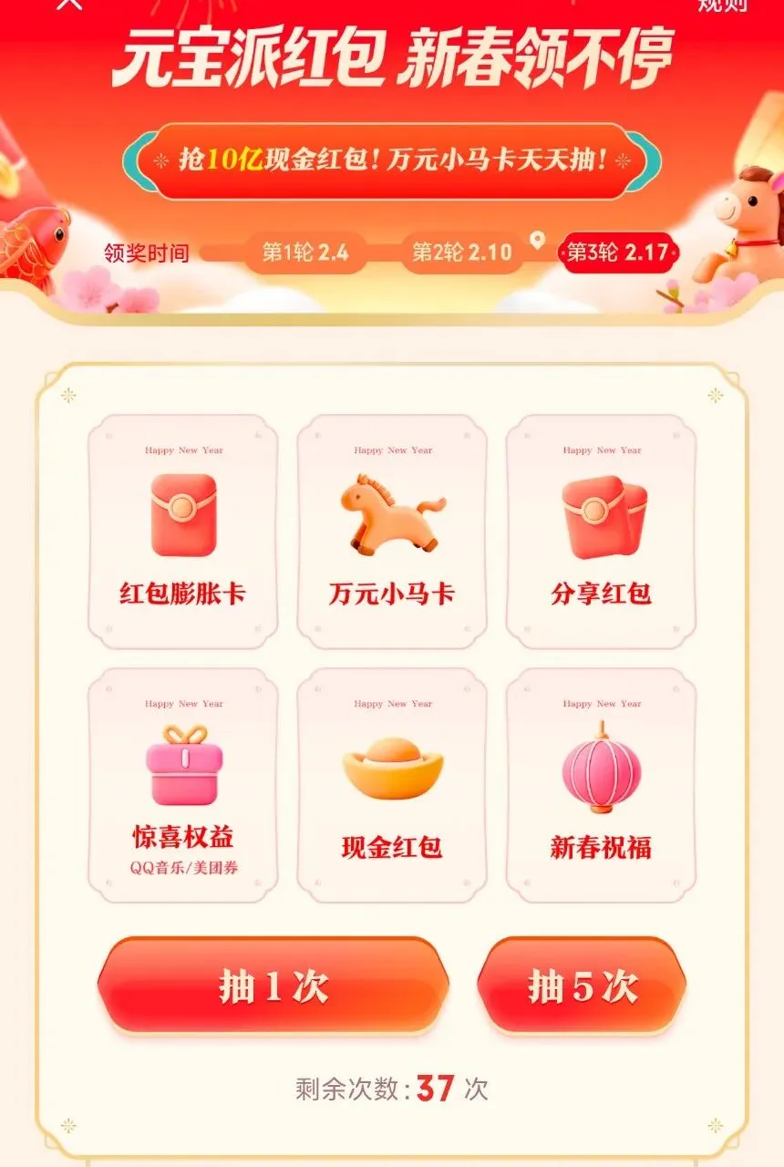 元宝、千问、抖省省三大热门APP齐发新春福利,还有支付宝五福,快手摇钱树!红包、免单、无门槛券统统安排上——手慢无,速看!