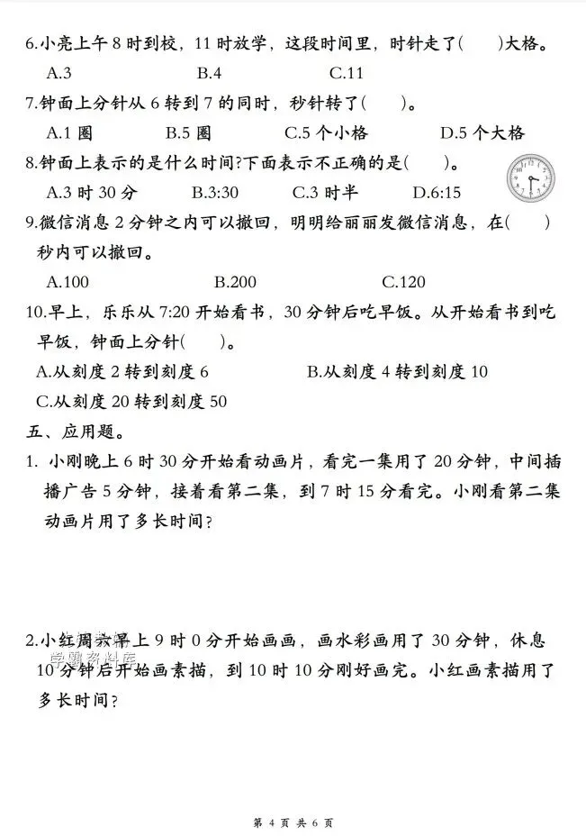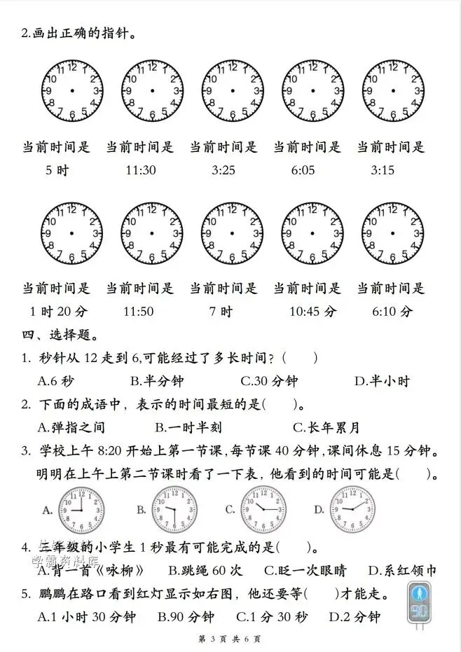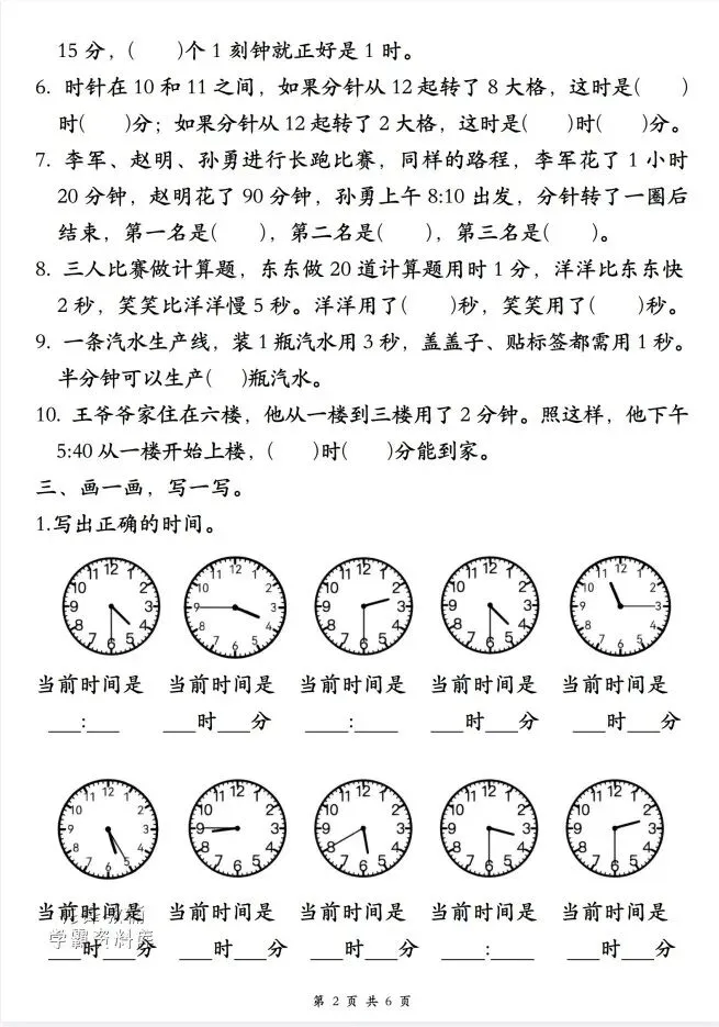今天给大家整理了26春二年级下册数学《认识时间》专项练习,转发给朋友或班级群,受益更多人,帮助孩子学习!