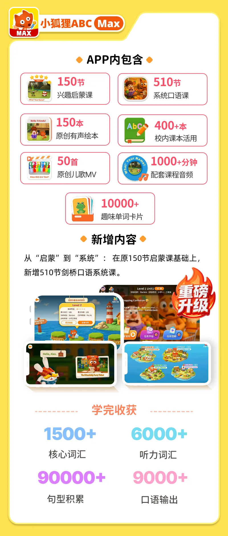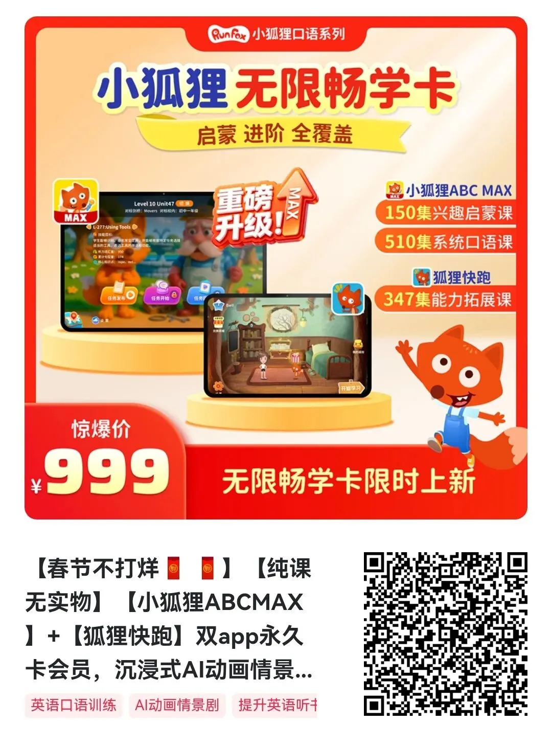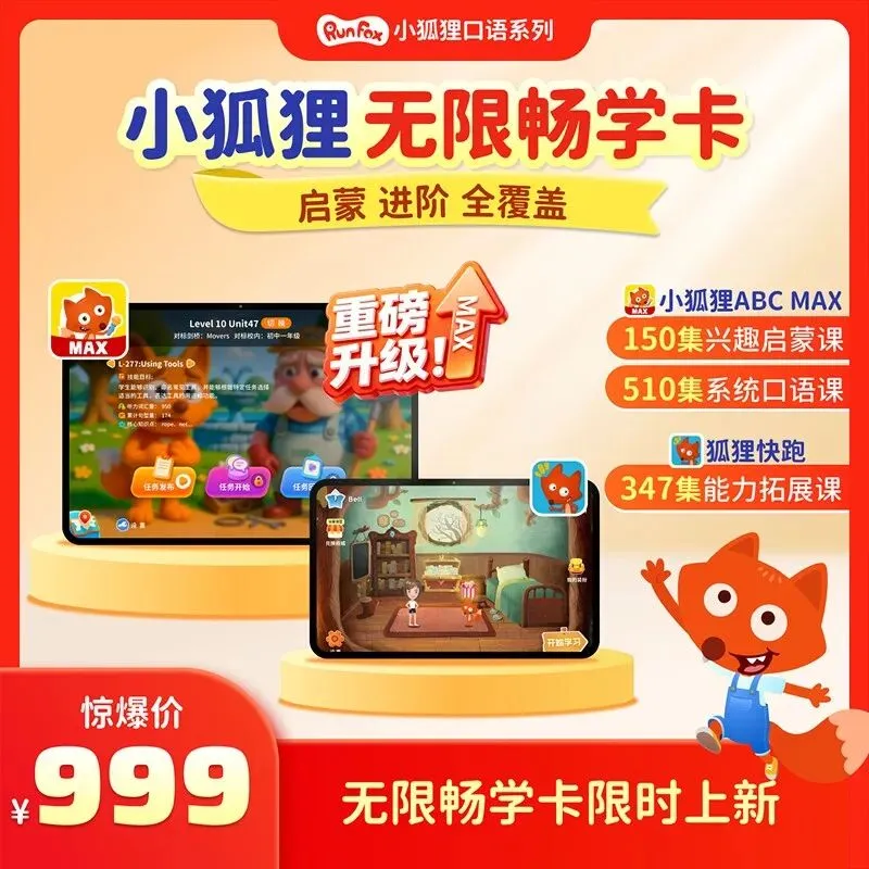 【课程包含】小狐狸 ABCMAX 150集+510集系统口语课+狐狸快跑347集能力拓展课