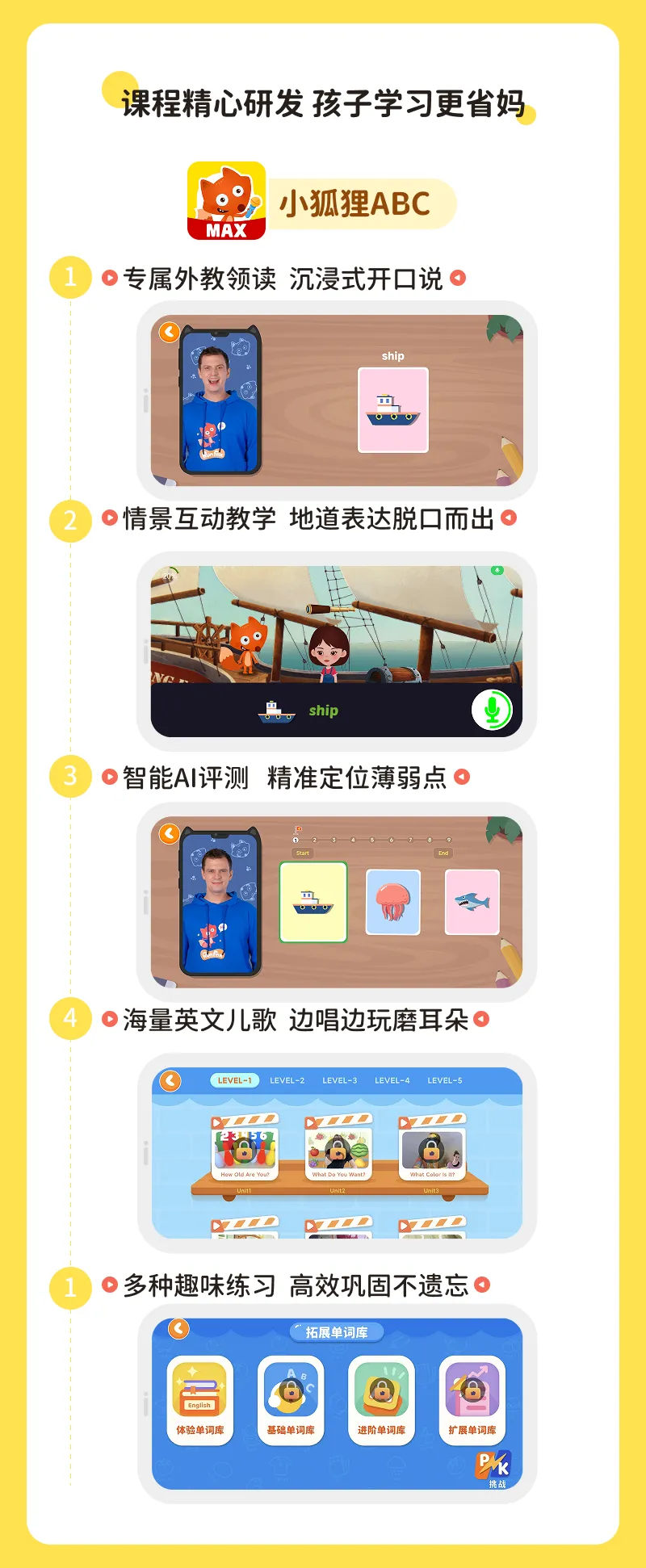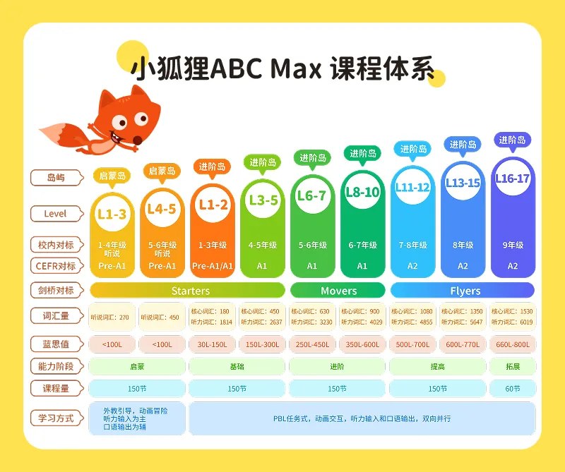 ● 小狐狸ABCMAX:适合3-12岁零基础或有基础娃进行系统学习。
