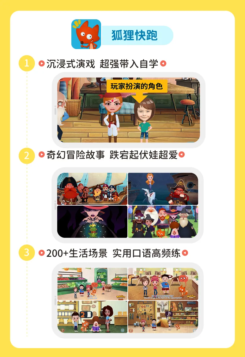 ● 狐狸快跑:适合5-12岁,进行能力拓展,听说训练