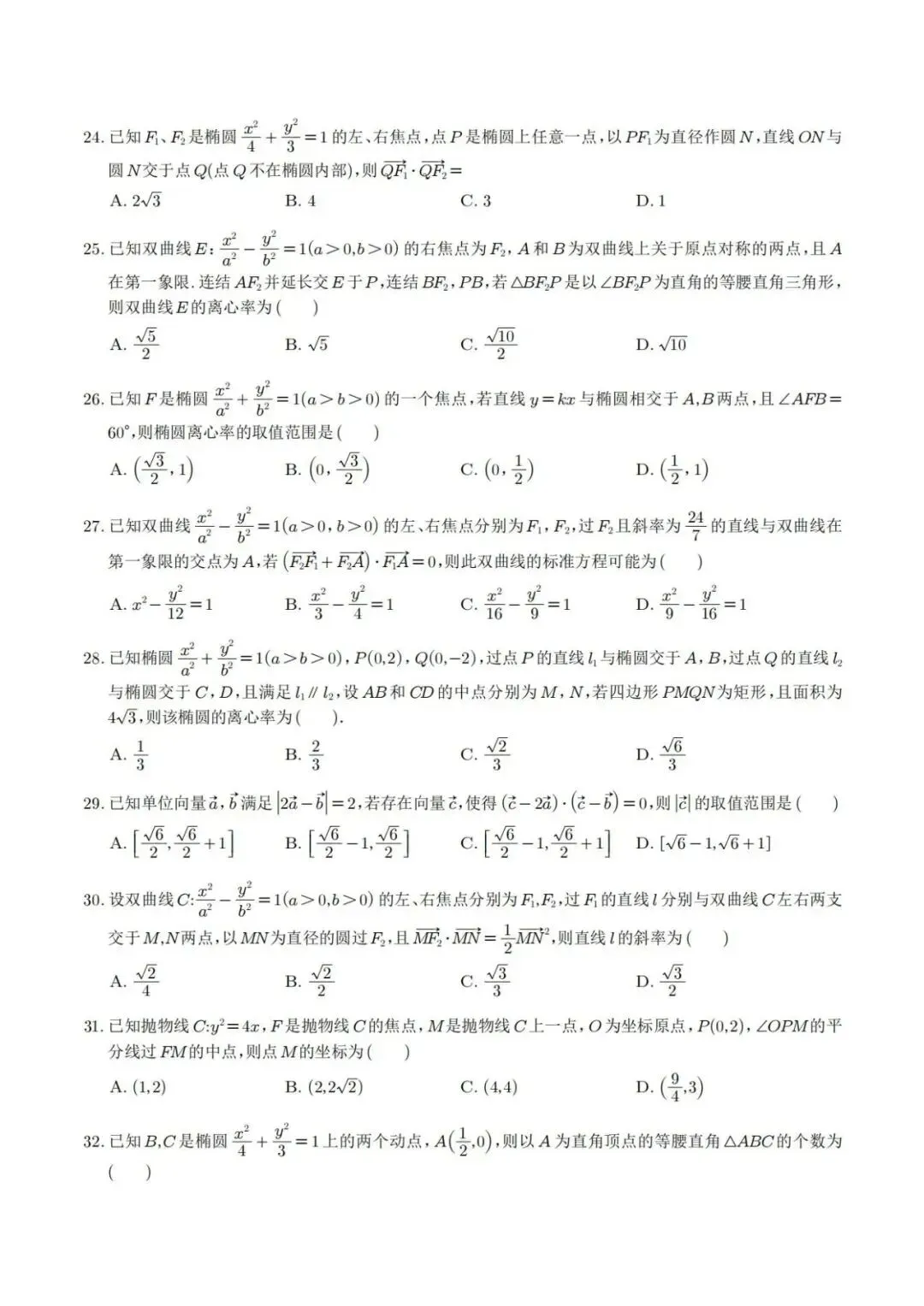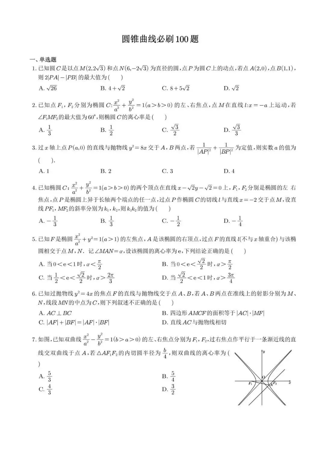 2026高中圆锥曲线通关100题|PDF可打印,寒假每天5题,刷题有解析,高二高三直接冲高分!