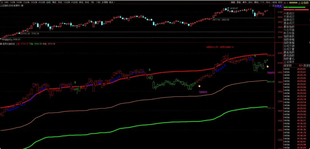 稳妥一种方式:中轨上+红色K线交易,带止损交易方式:跌破入场当天最低点。