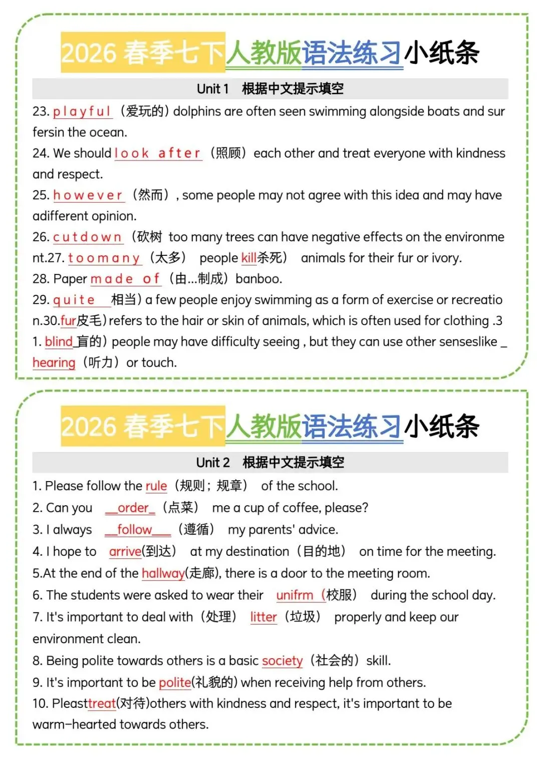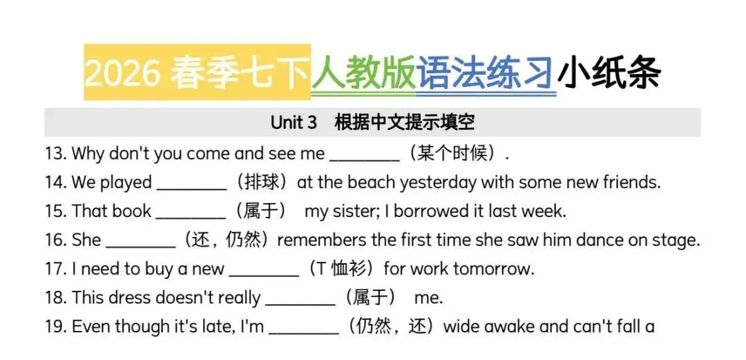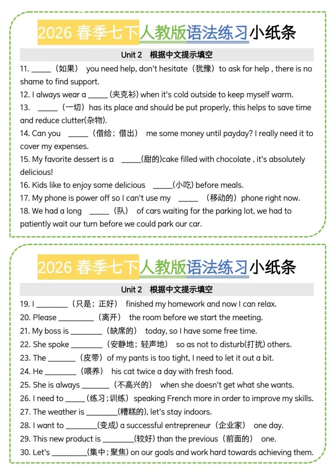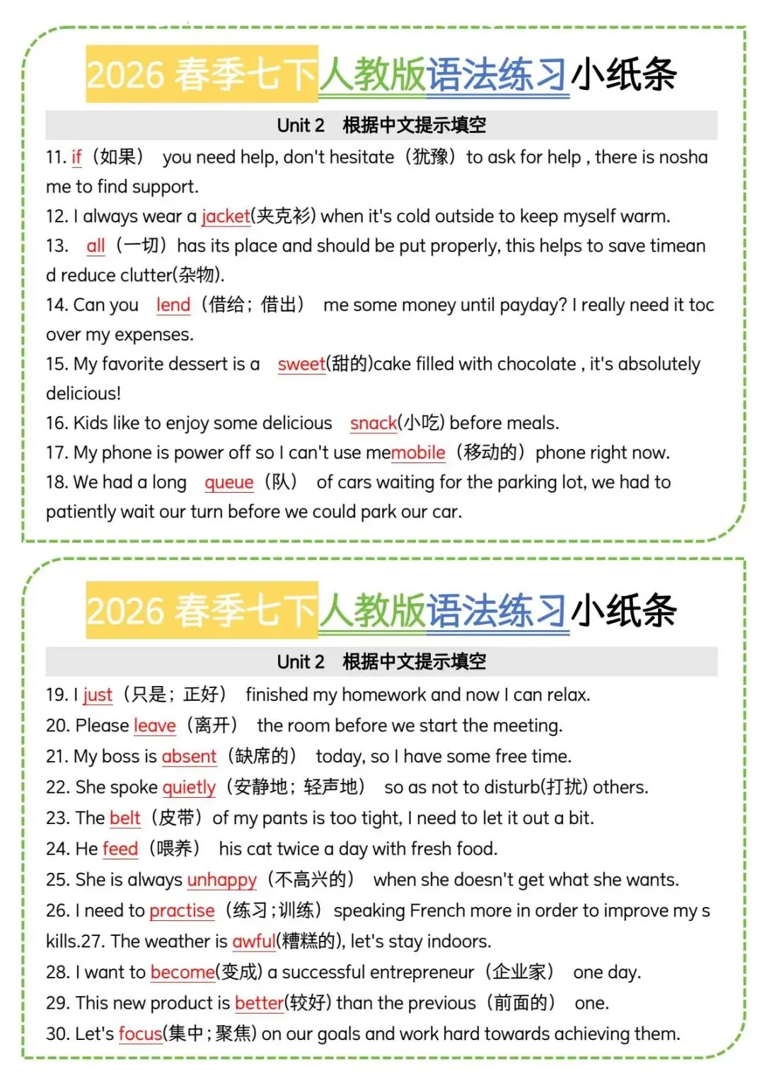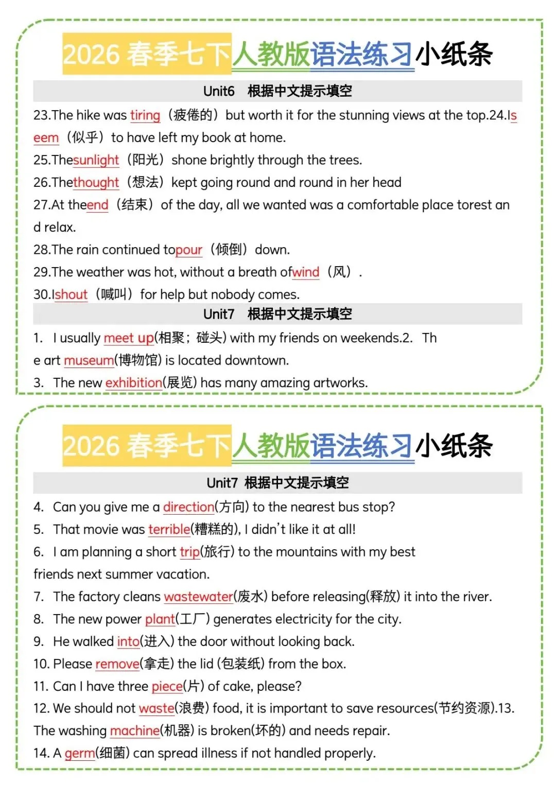 最新启用人教版英语七年级下册新教材学习资料包免费分享链接: