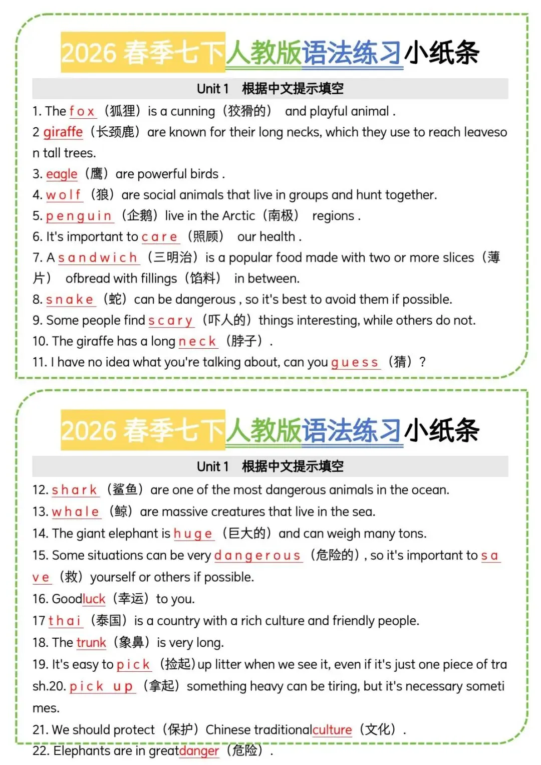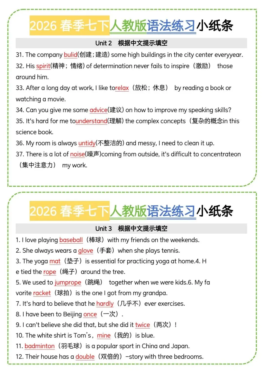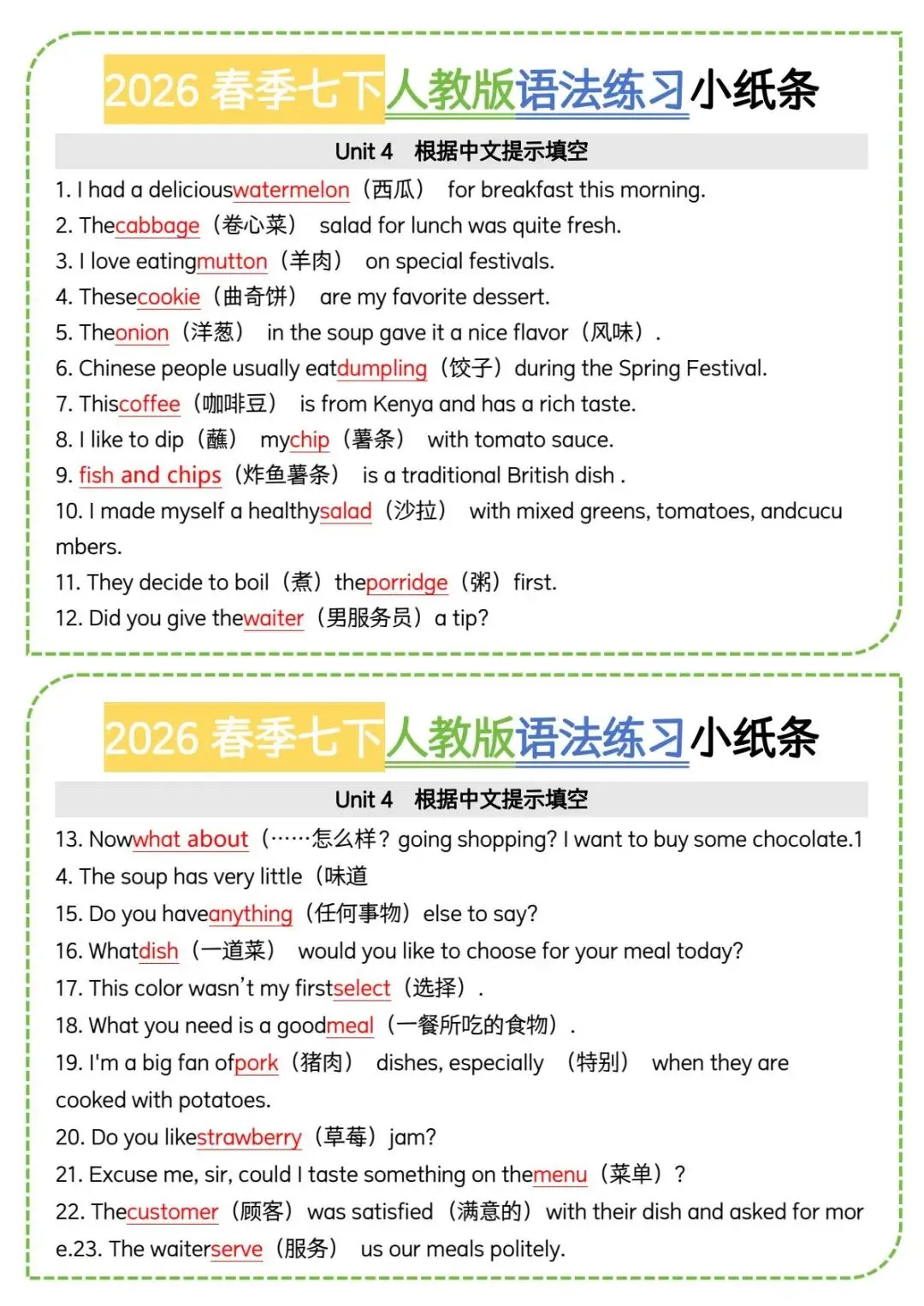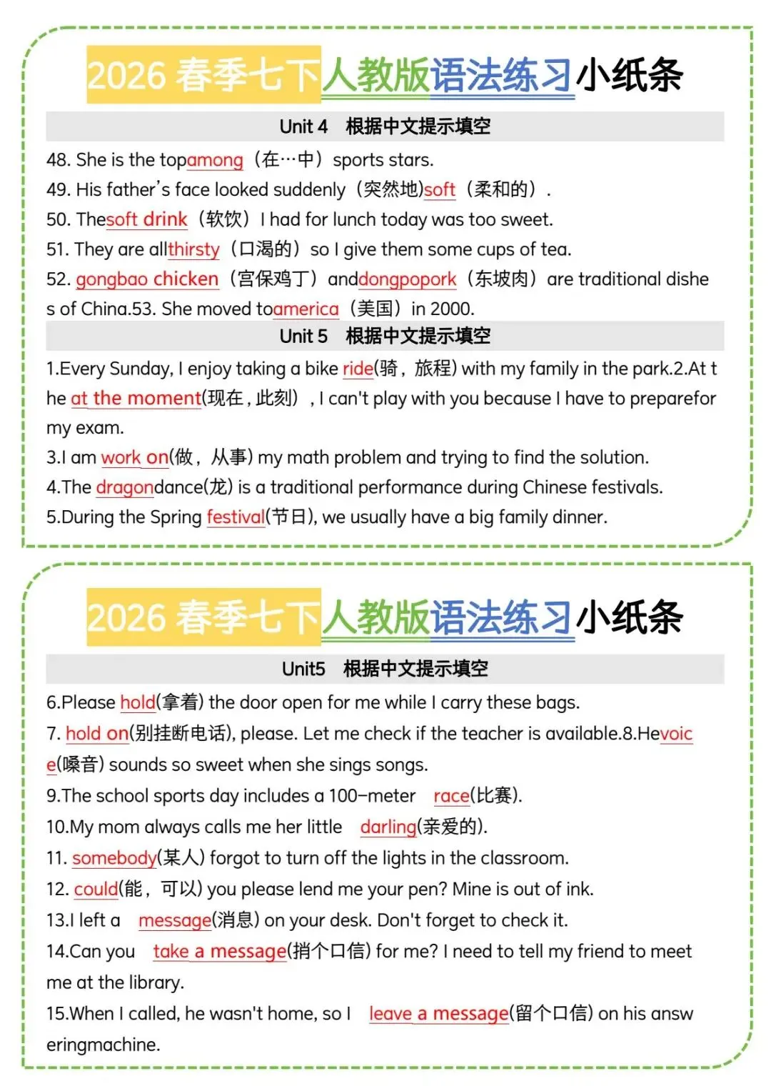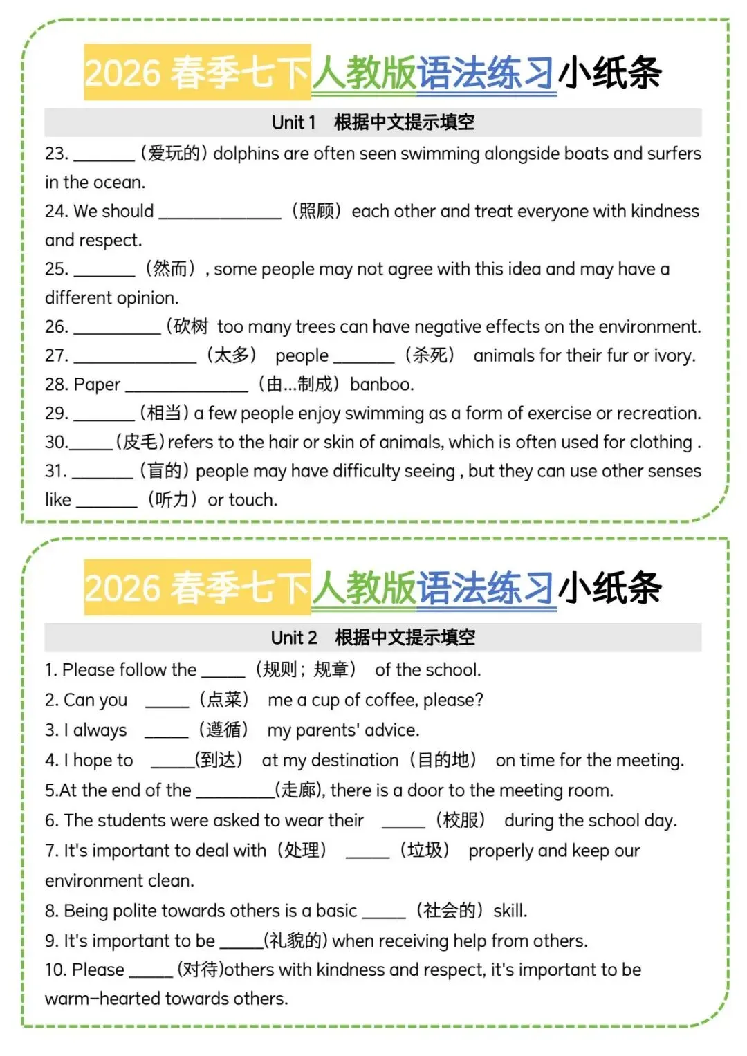 最新启用人教版英语七年级下册新教材学习资料包免费分享链接: