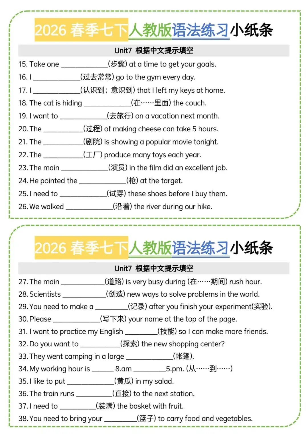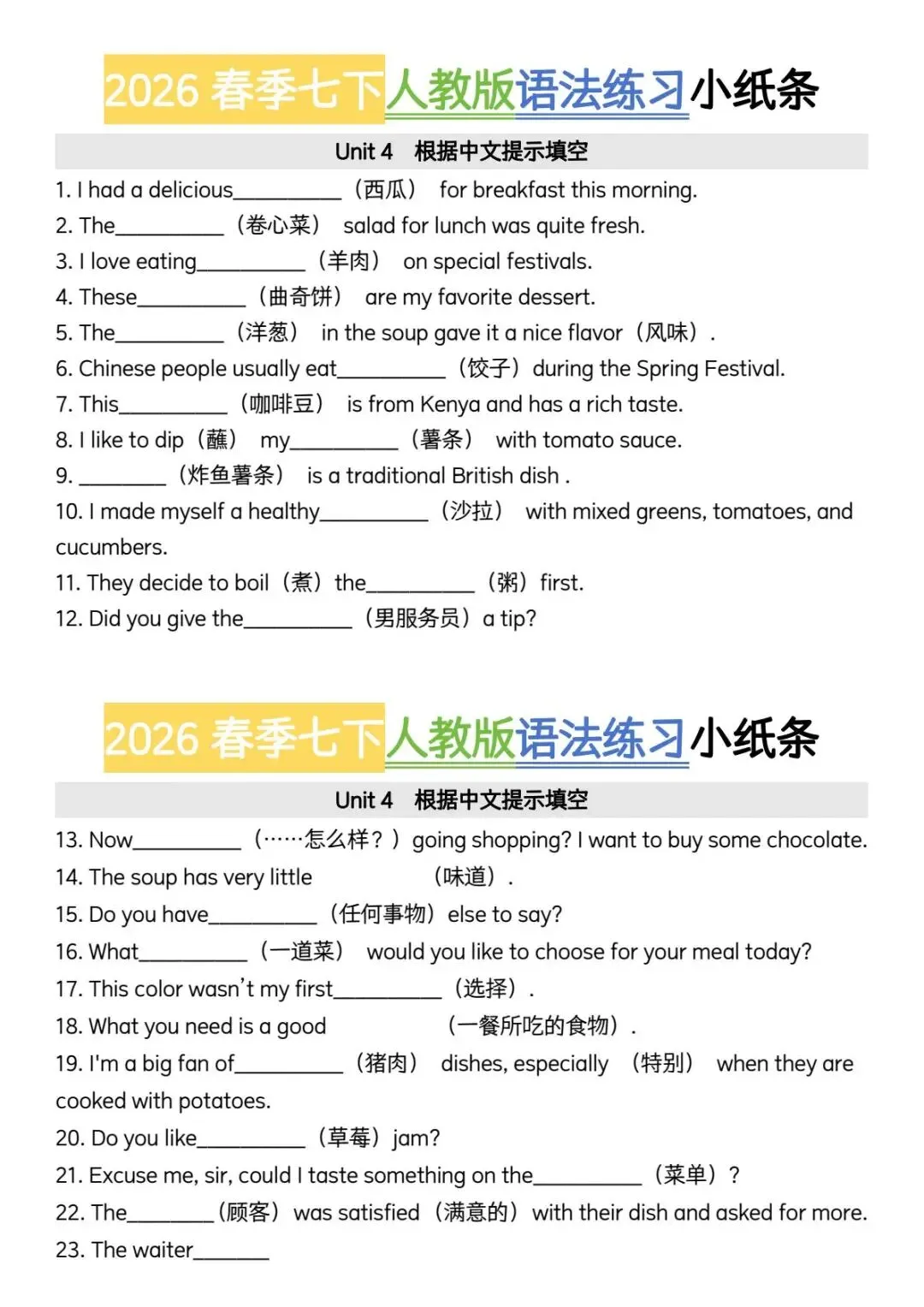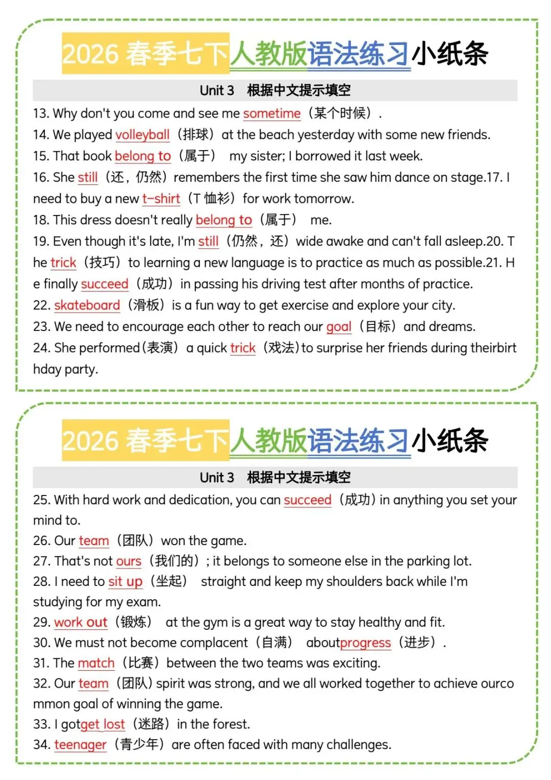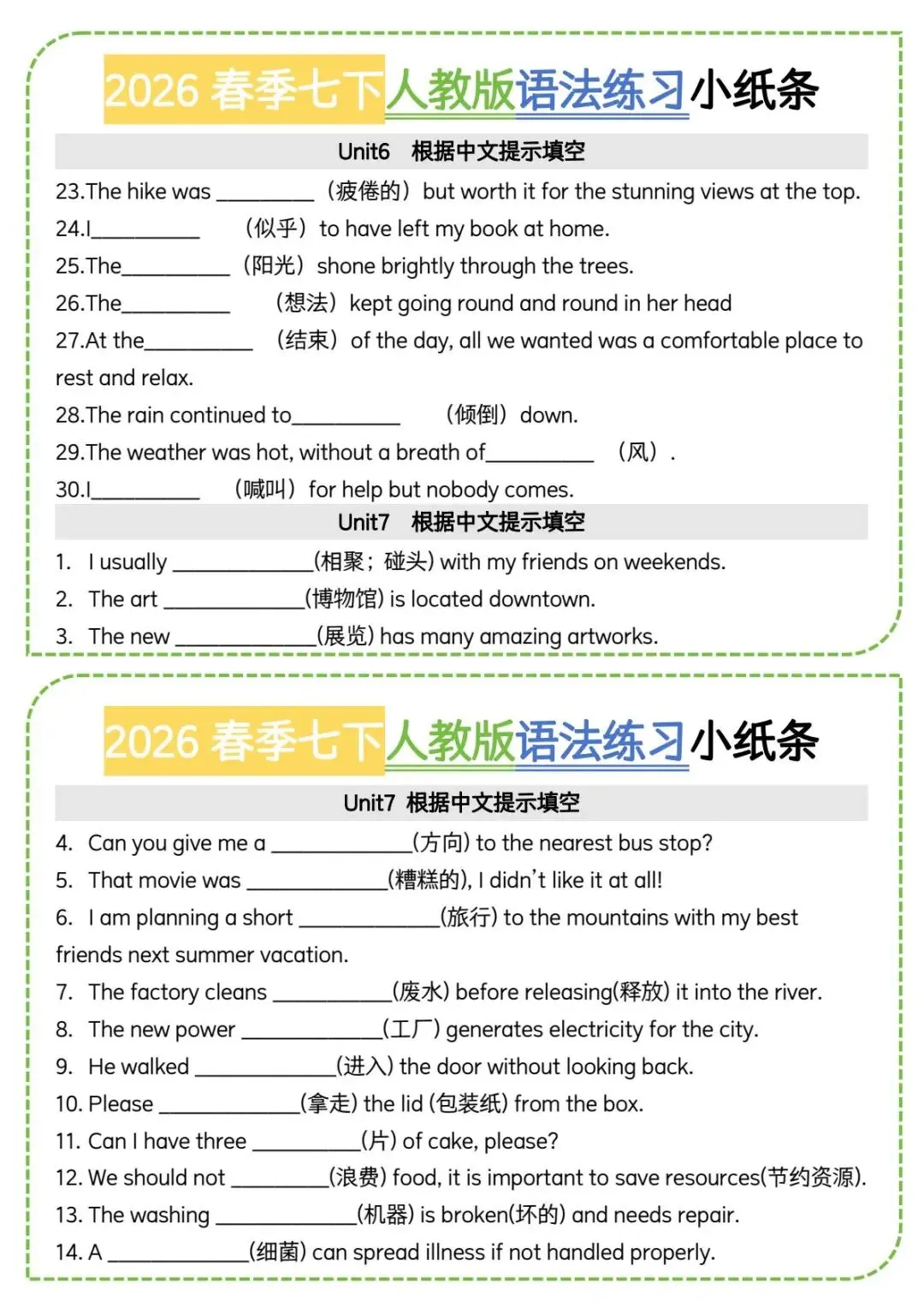 最新启用人教版英语七年级下册新教材学习资料包免费分享链接:
