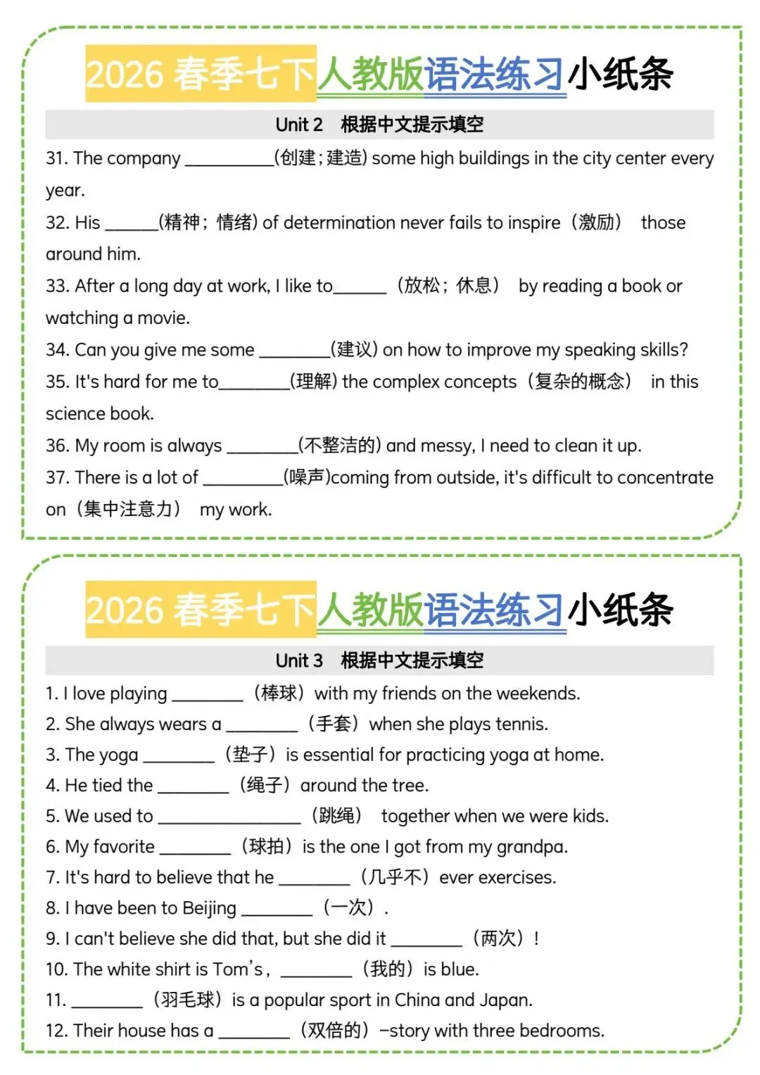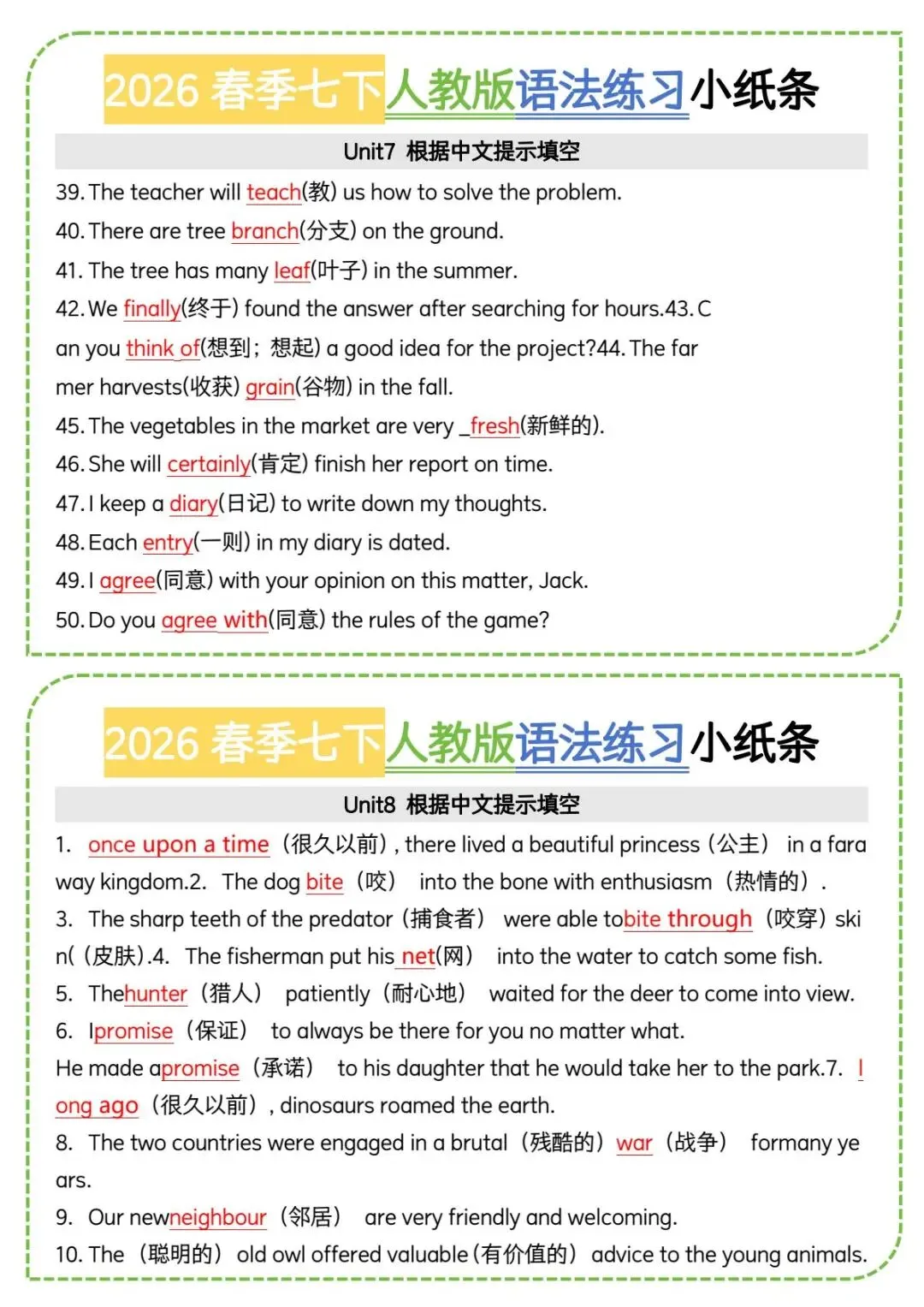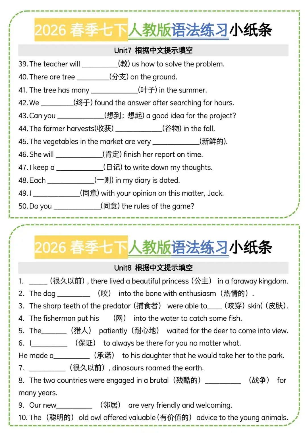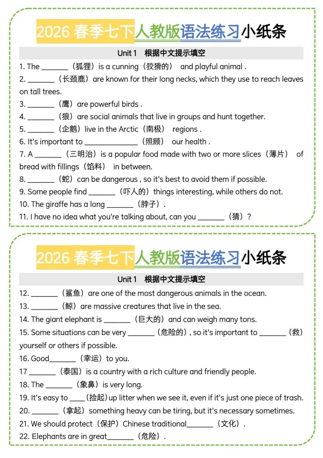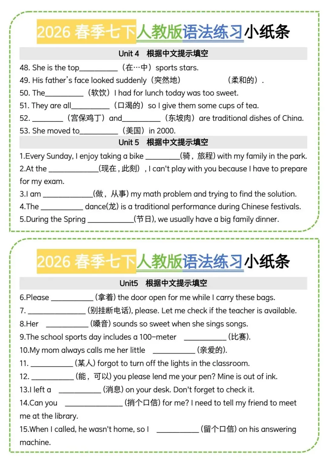 最新启用人教版英语七年级下册新教材学习资料包免费分享链接: