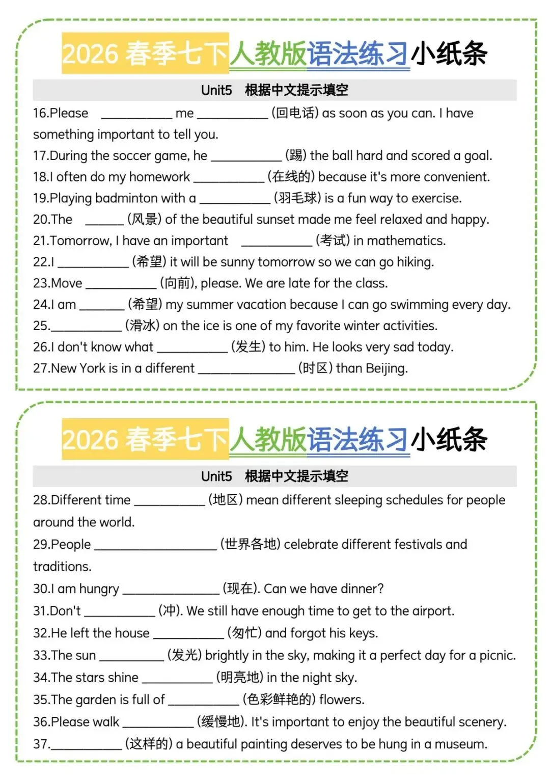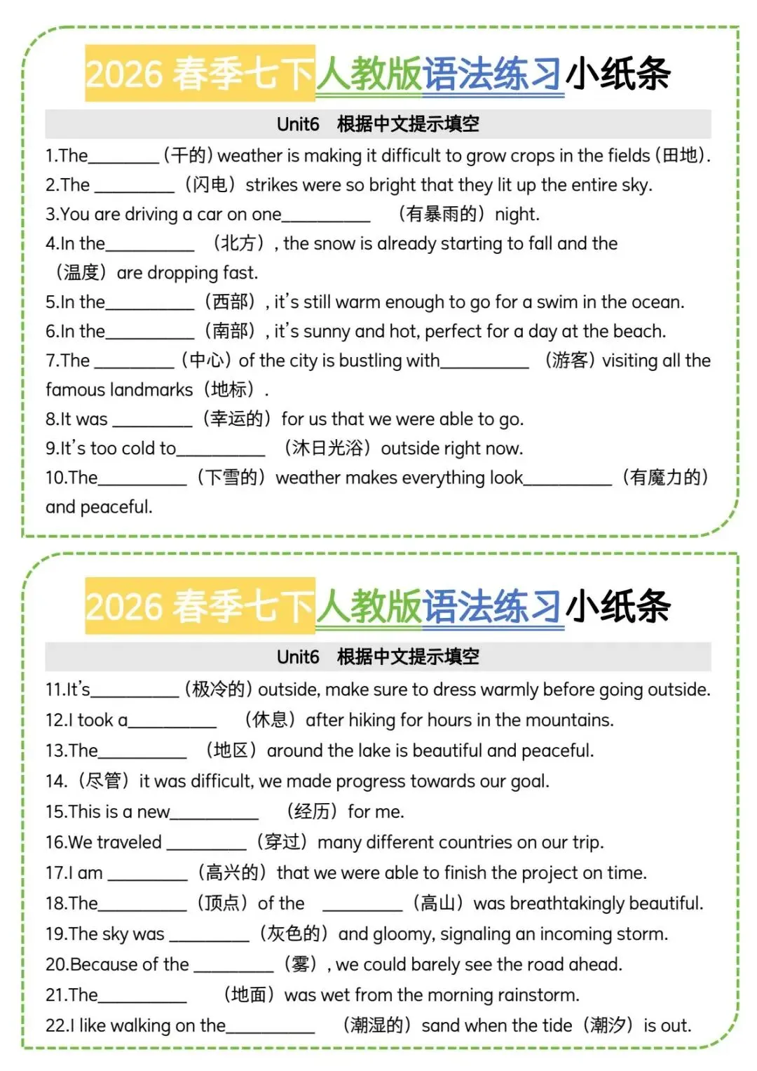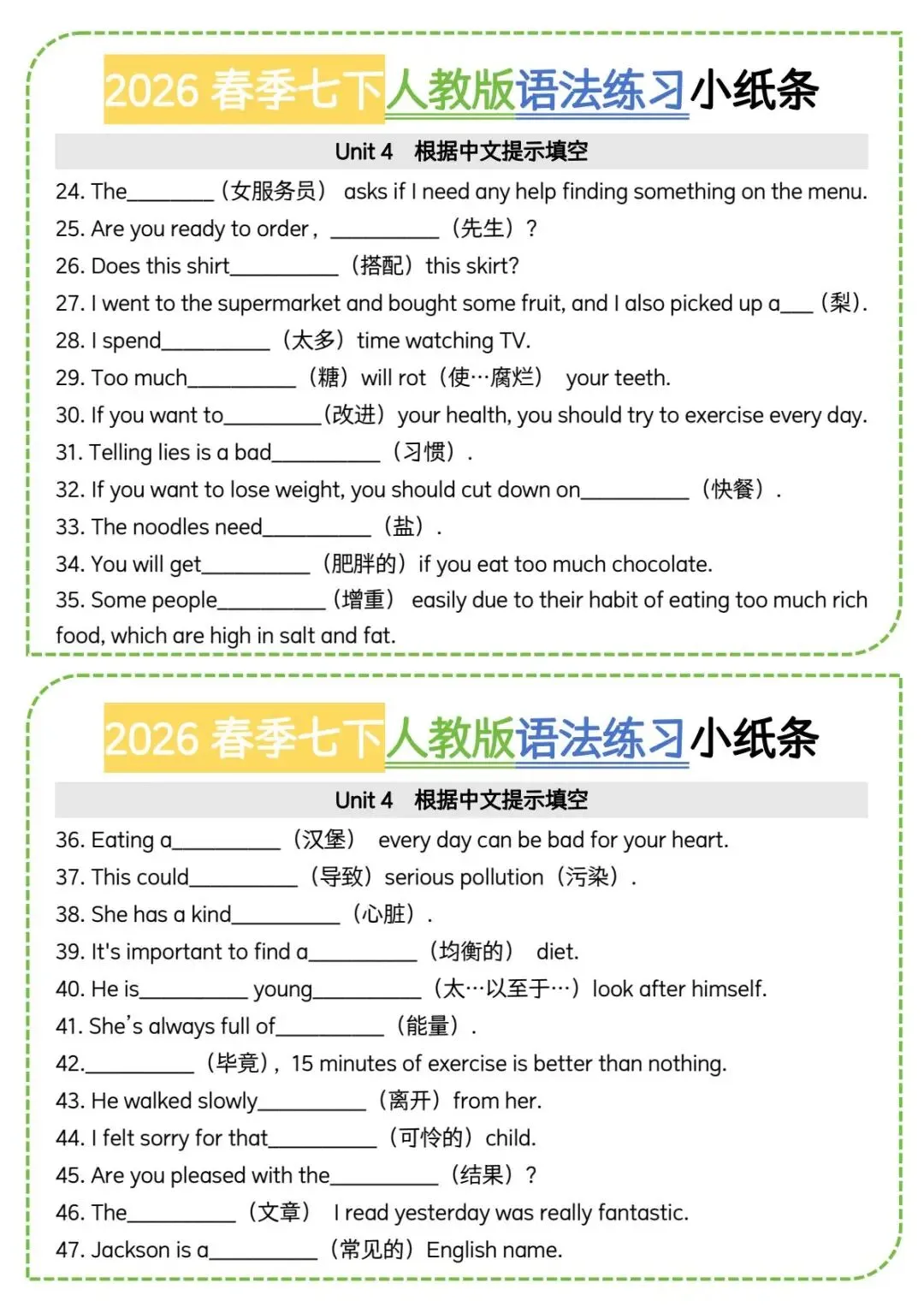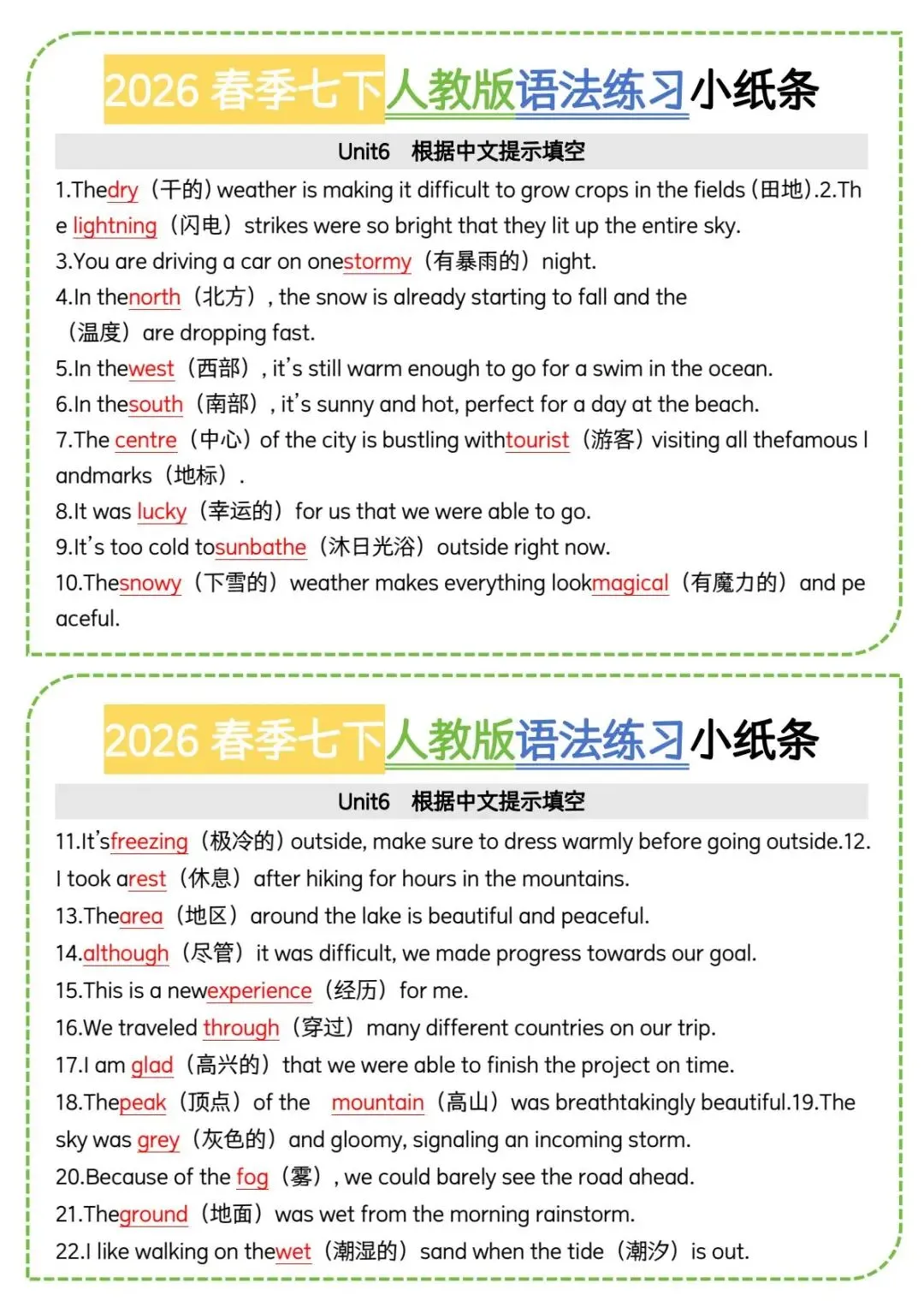 最新启用人教版英语七年级下册新教材学习资料包免费分享链接: