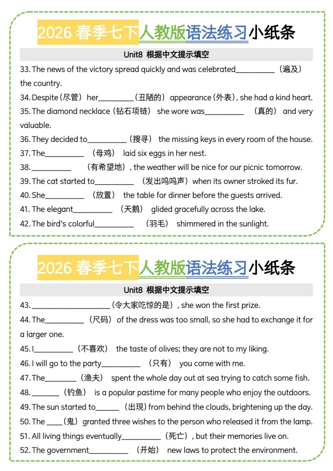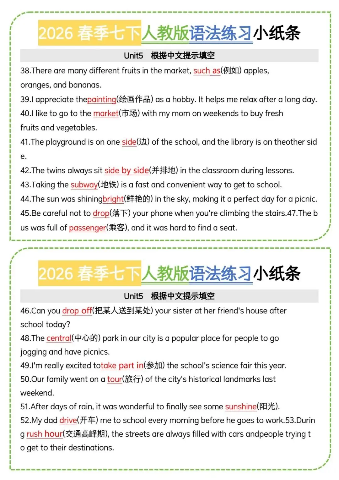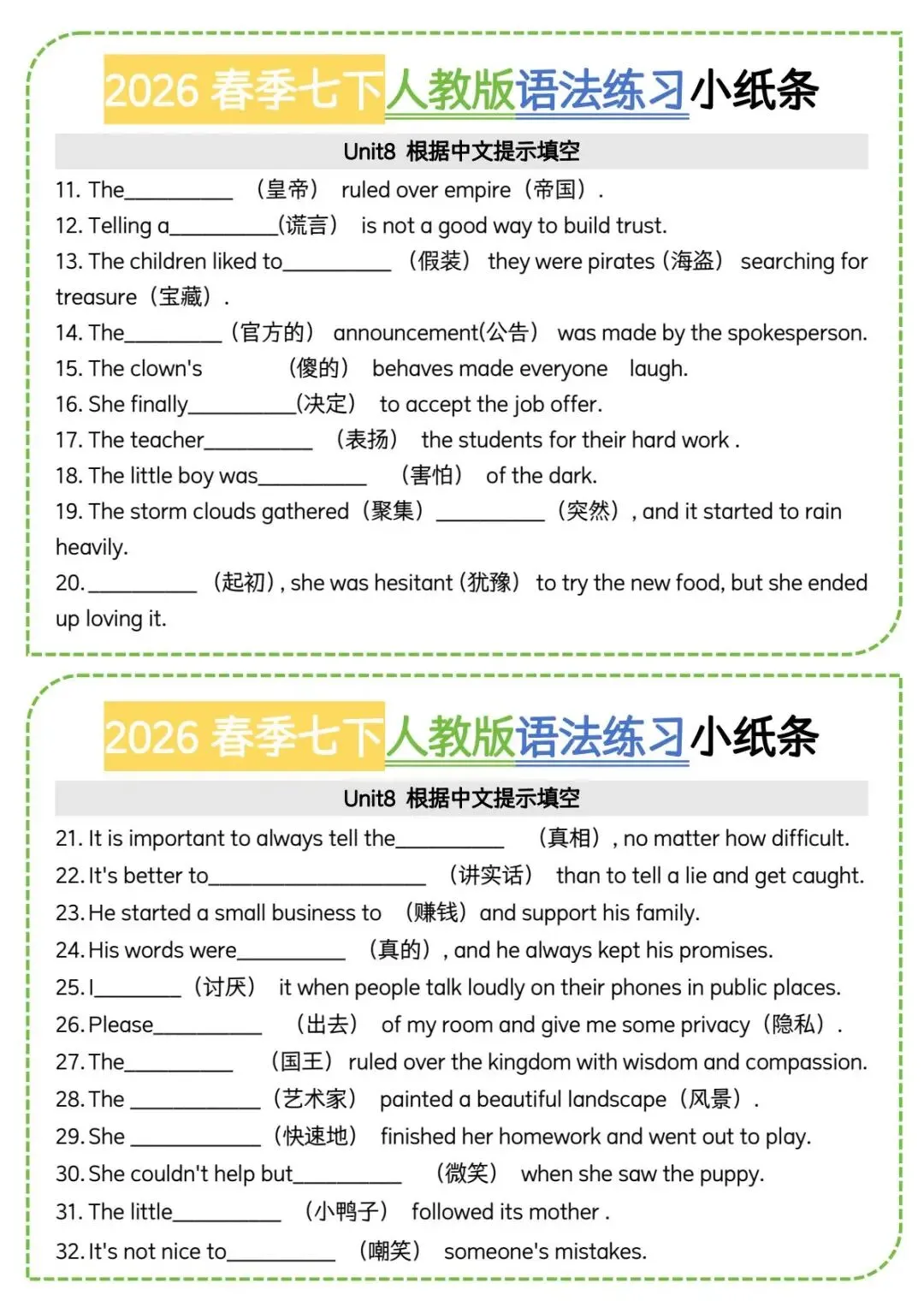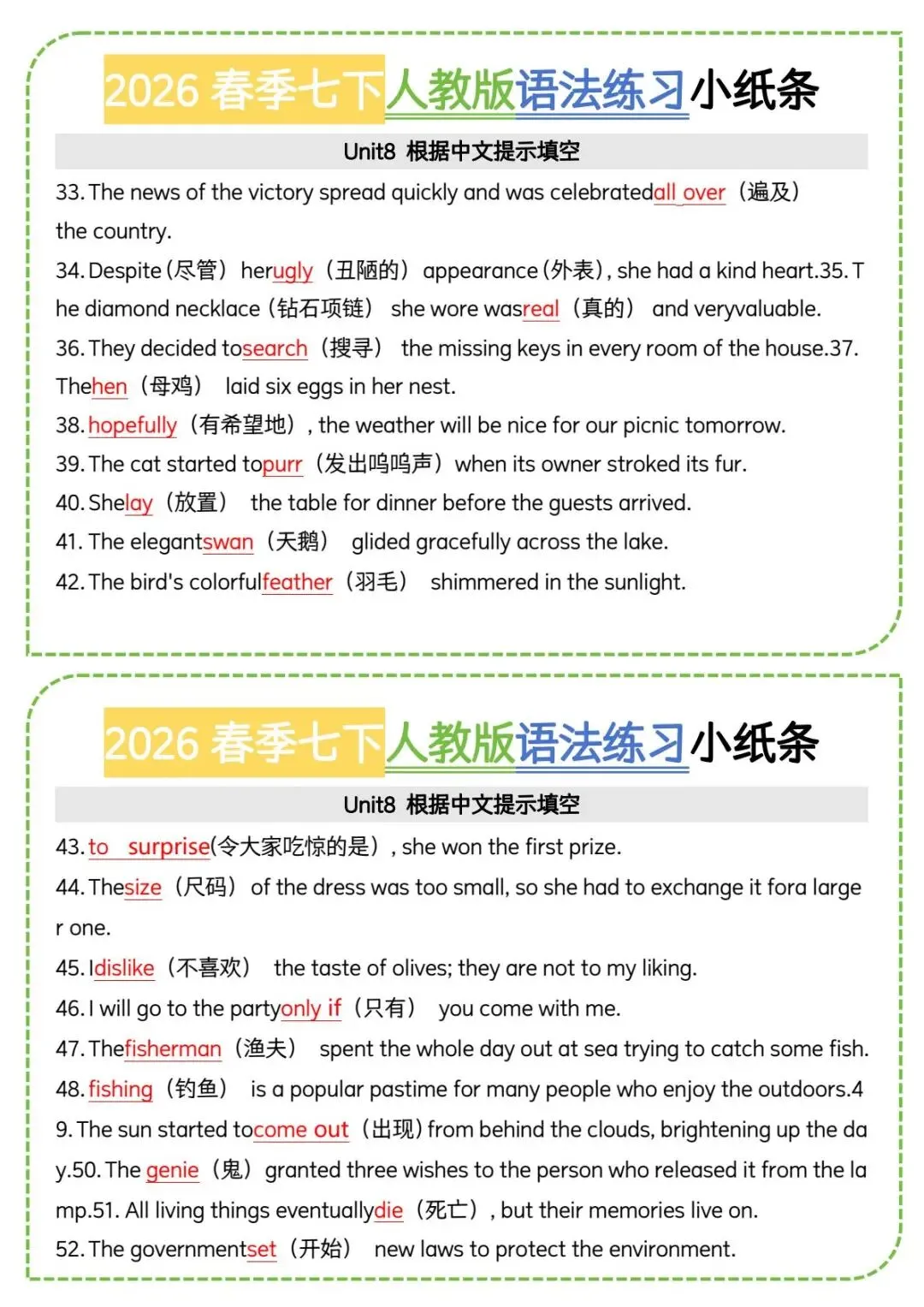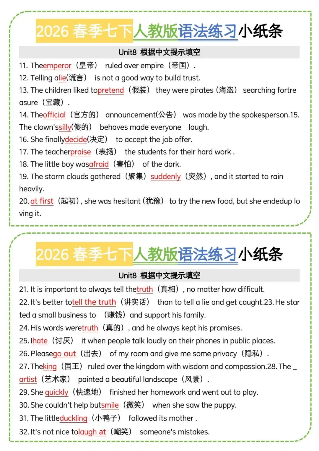 最新启用人教版英语七年级下册新教材学习资料包免费分享链接: