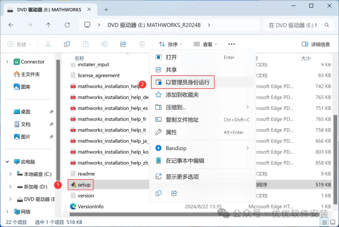 4、找到【setup】应用程序,右键选择【以管理员身份运行】它