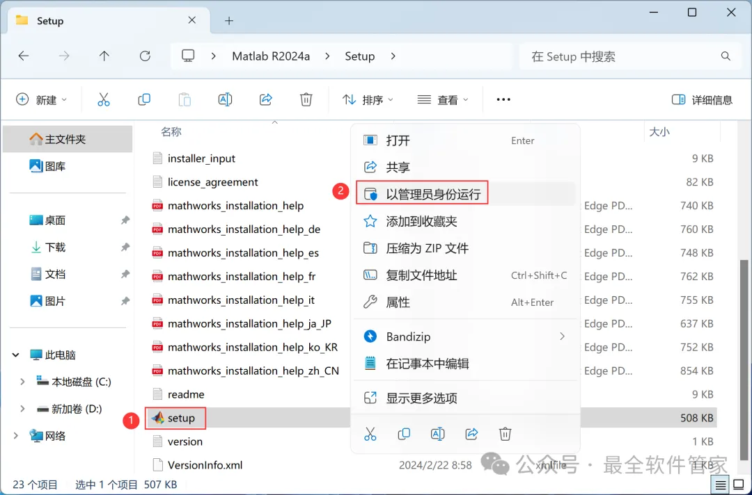 4、找到【setup】应用程序,右键选择【以管理员身份运行】它