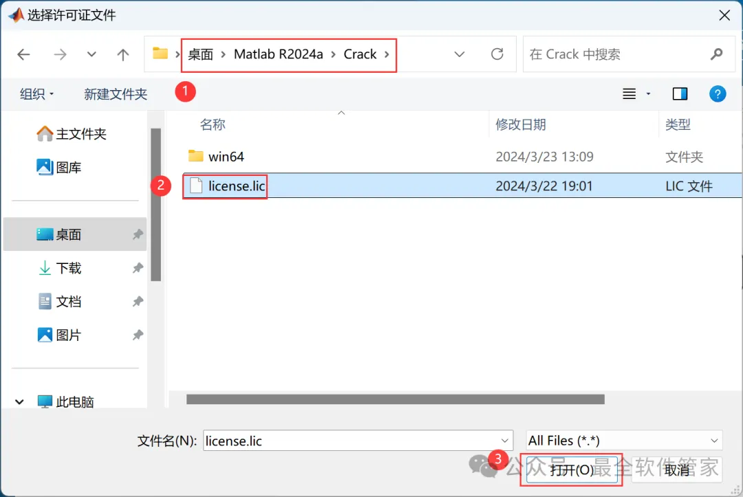 9、找到并选中安装包Crack文件夹下的【license.lic】,再点击【打开】